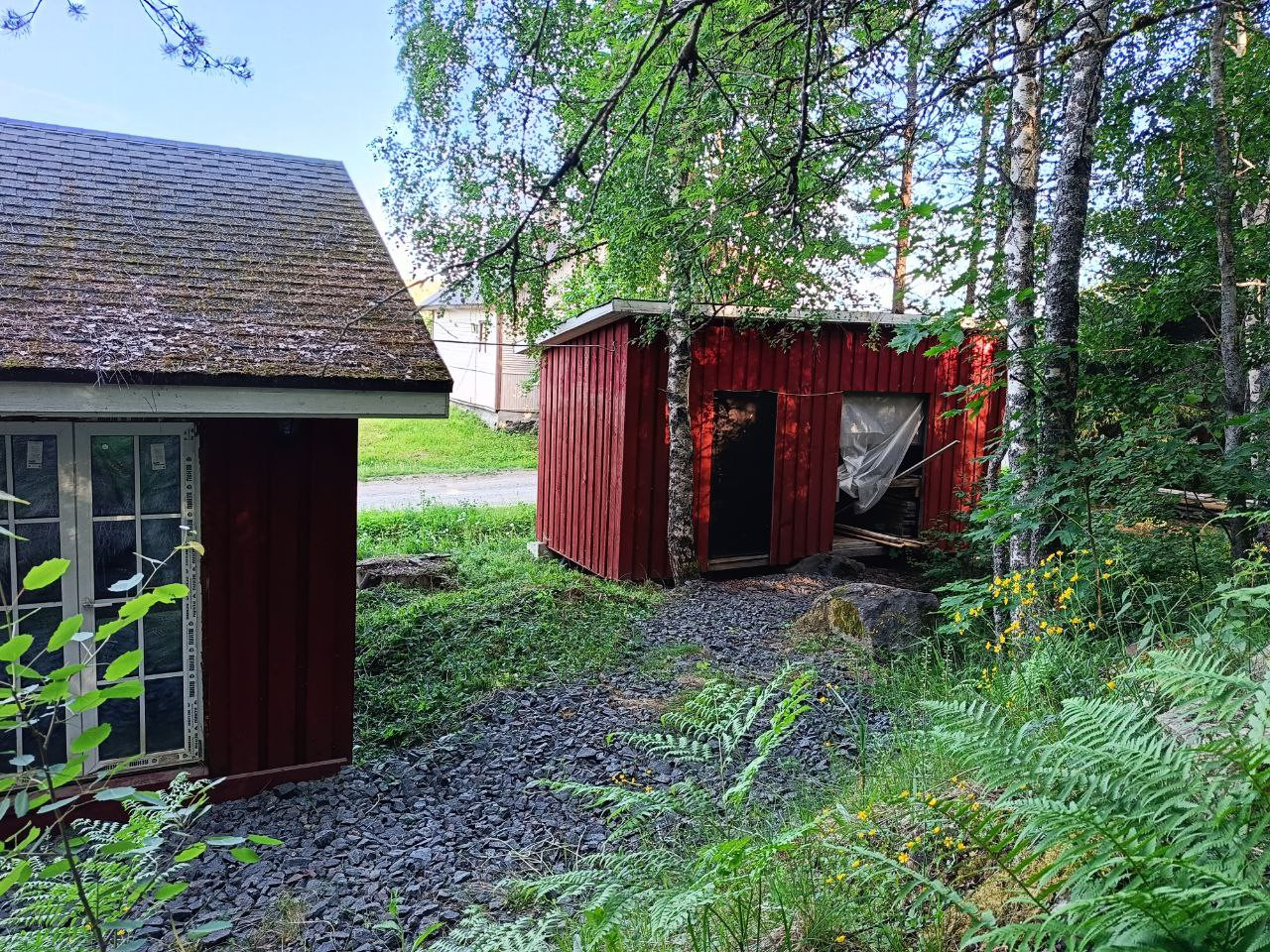С трех сторон участок ни чем не ограничен, одни соседи, до речки Мийналанйоки 40м.