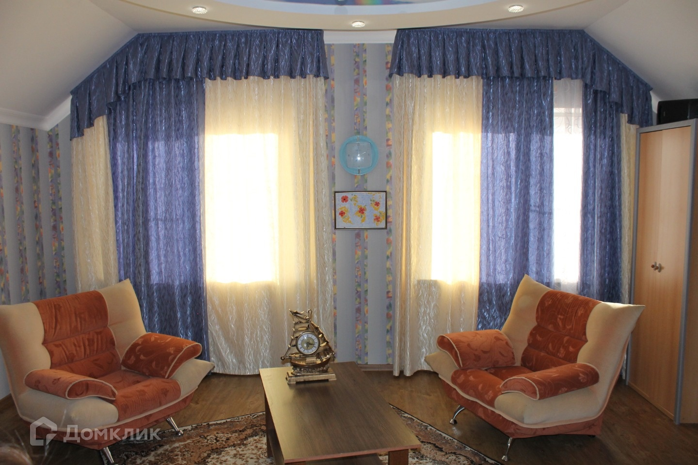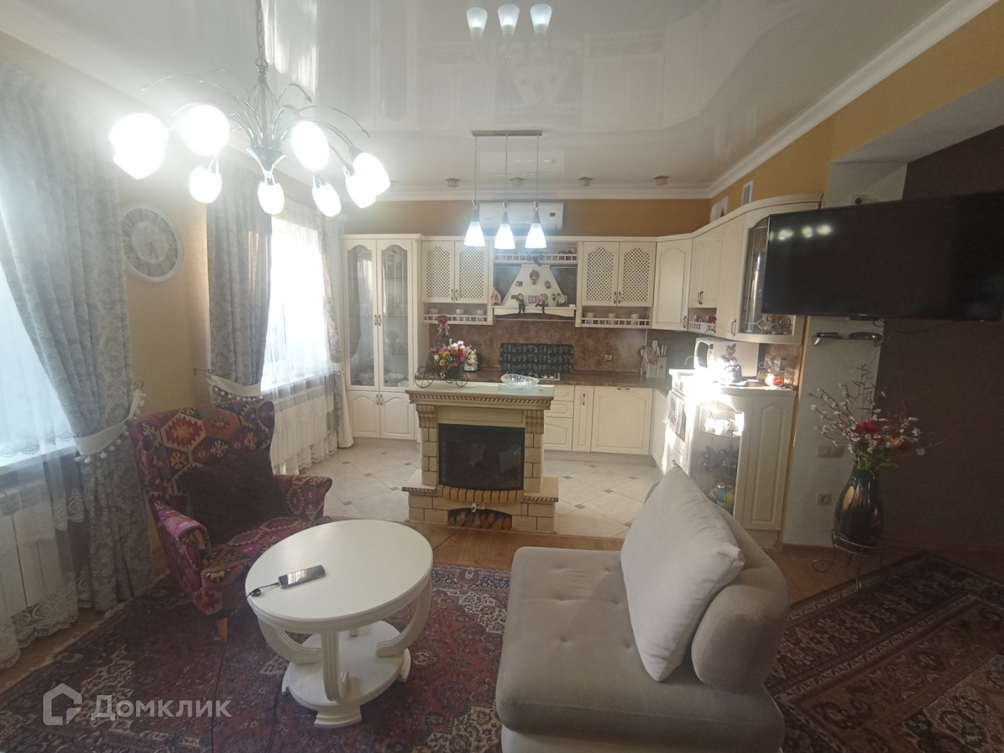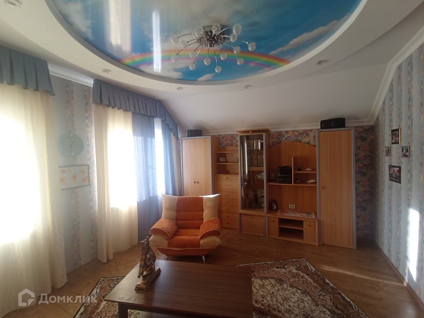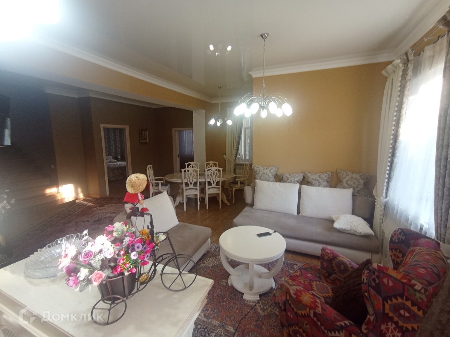 На 1м этаже везде натяжные потолки, на 2м гипсокартон