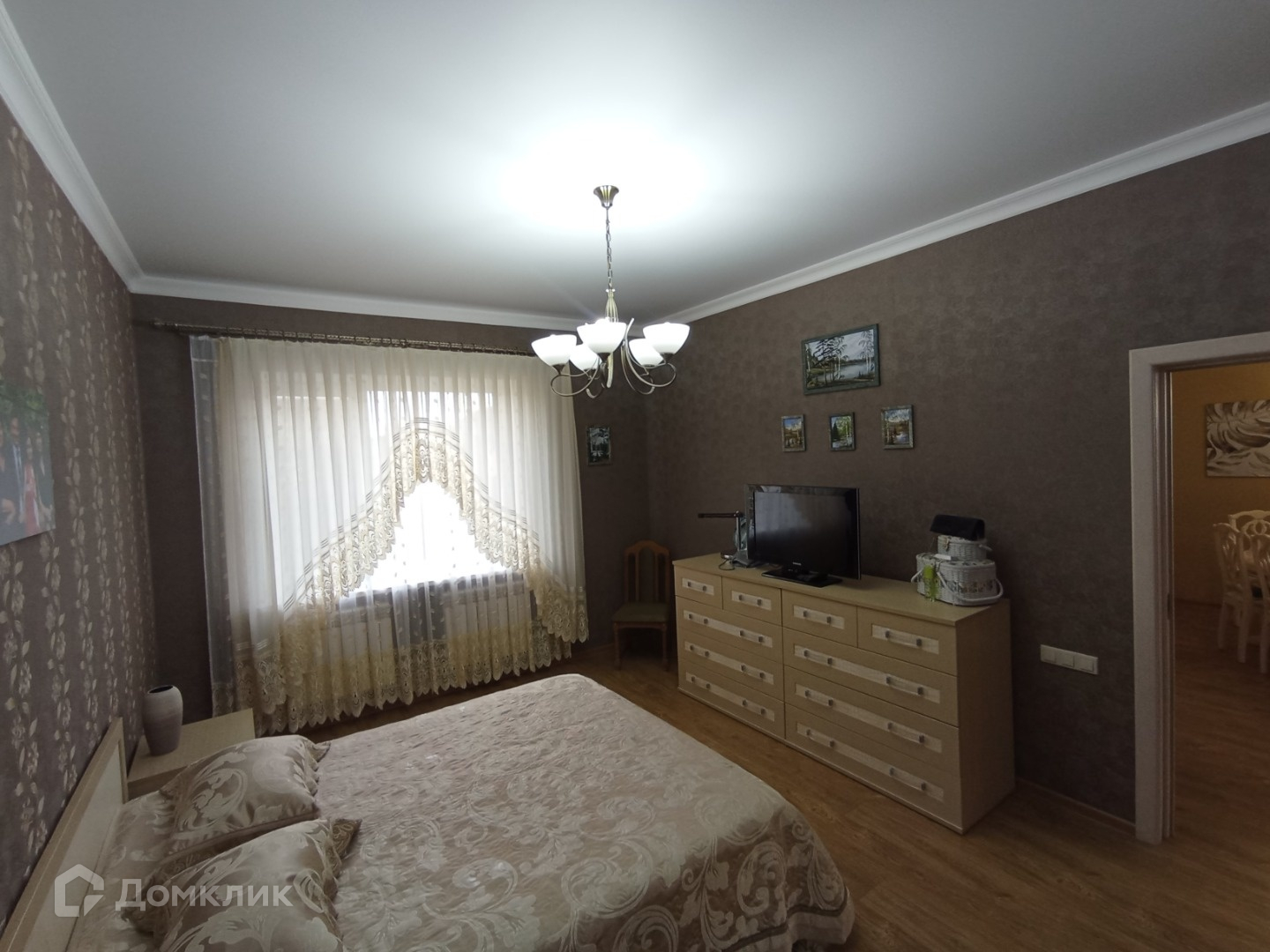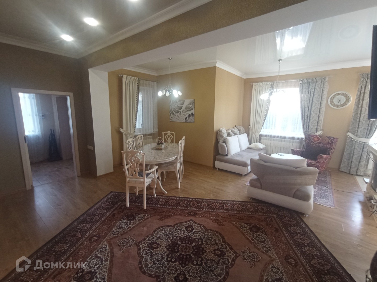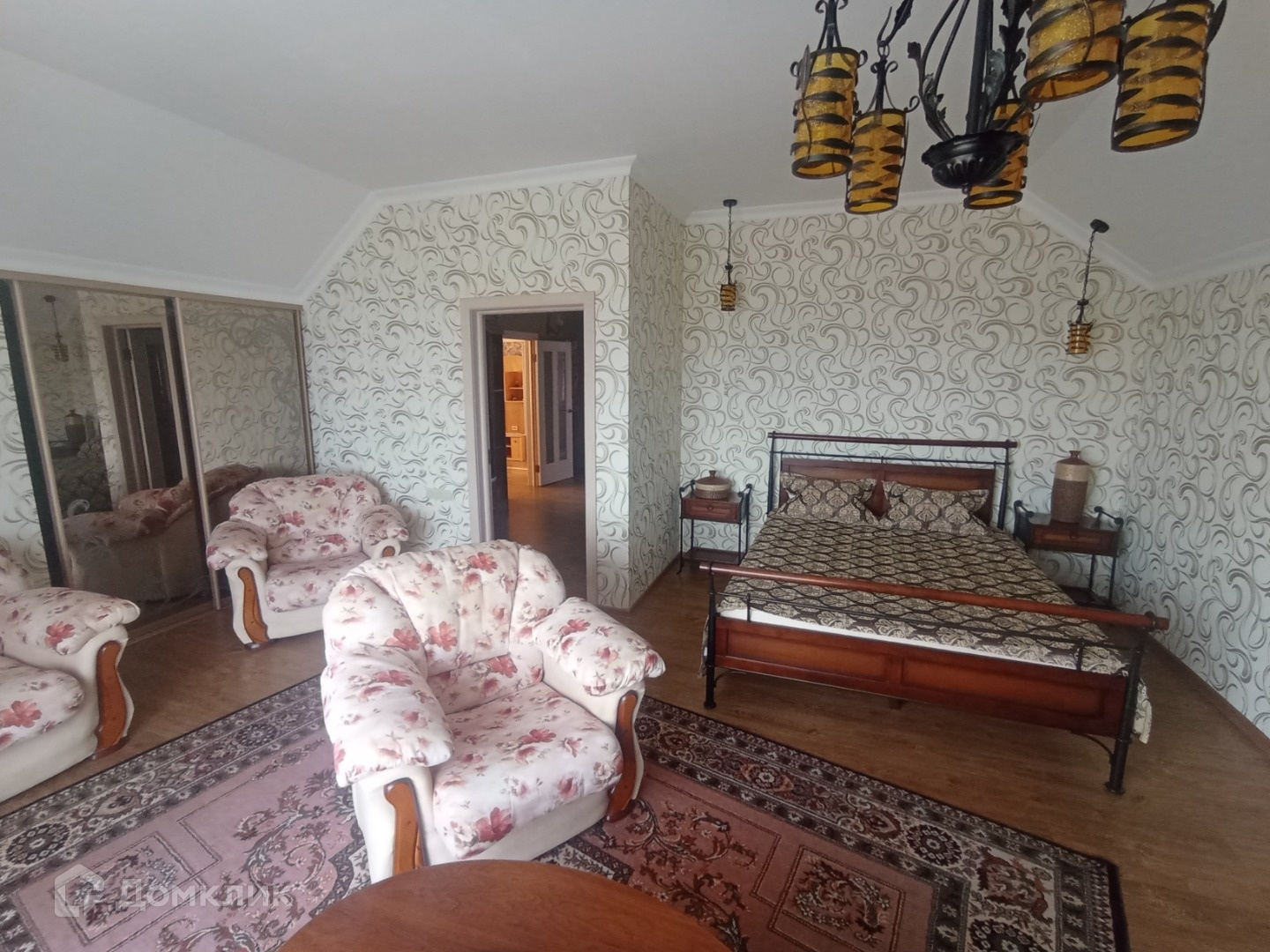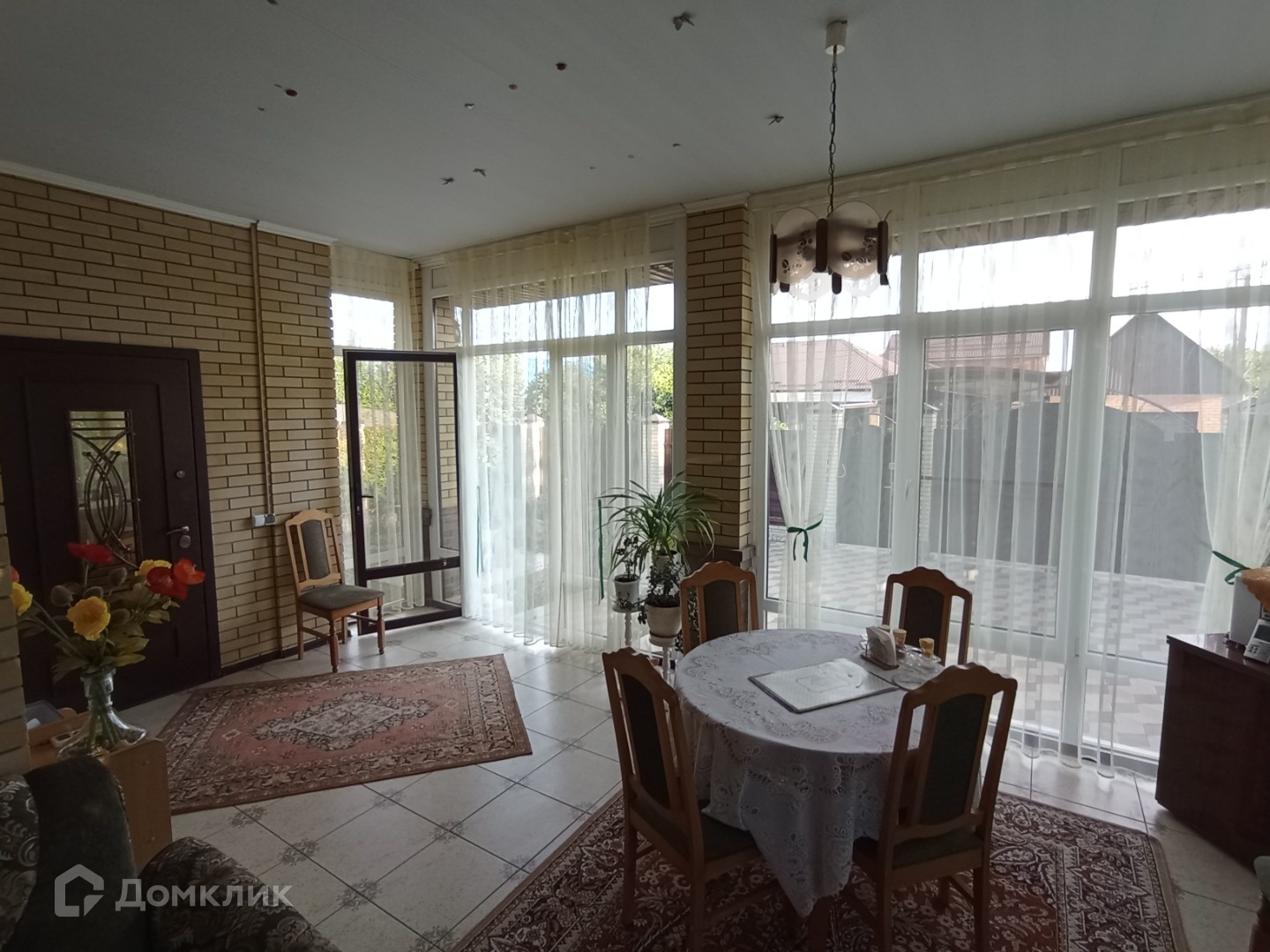 На 1м этаже везде натяжные потолки, на 2м гипсокартон