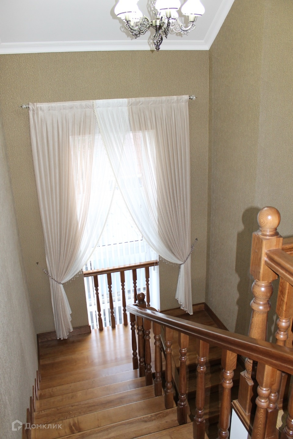 Установлен специальный механизм для опускания люстры над лестницей.