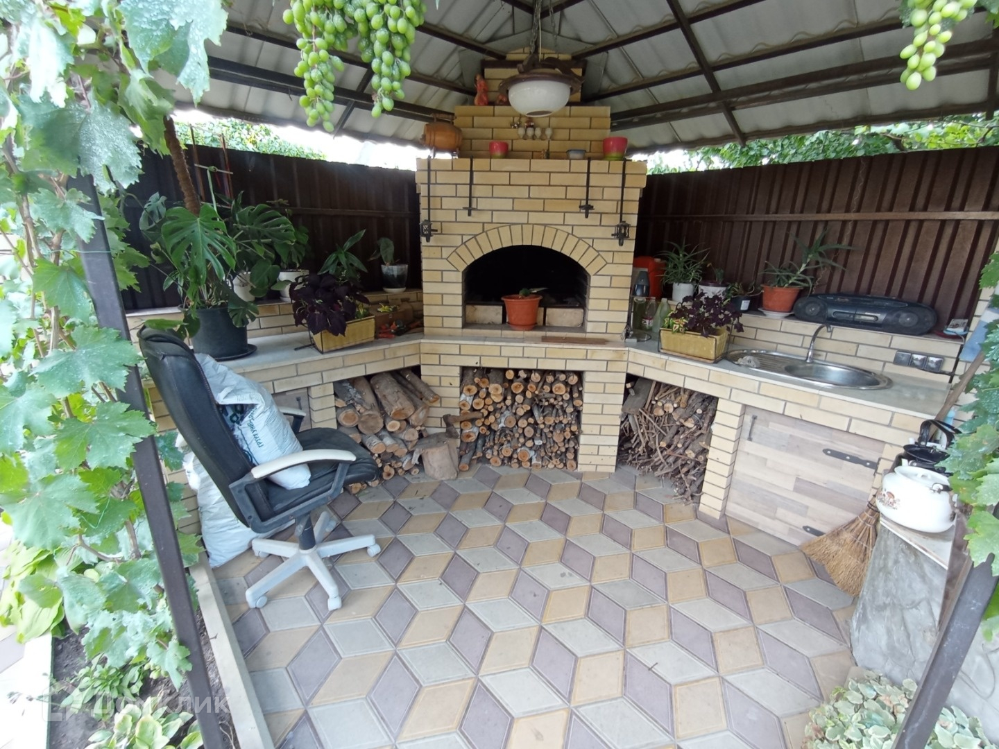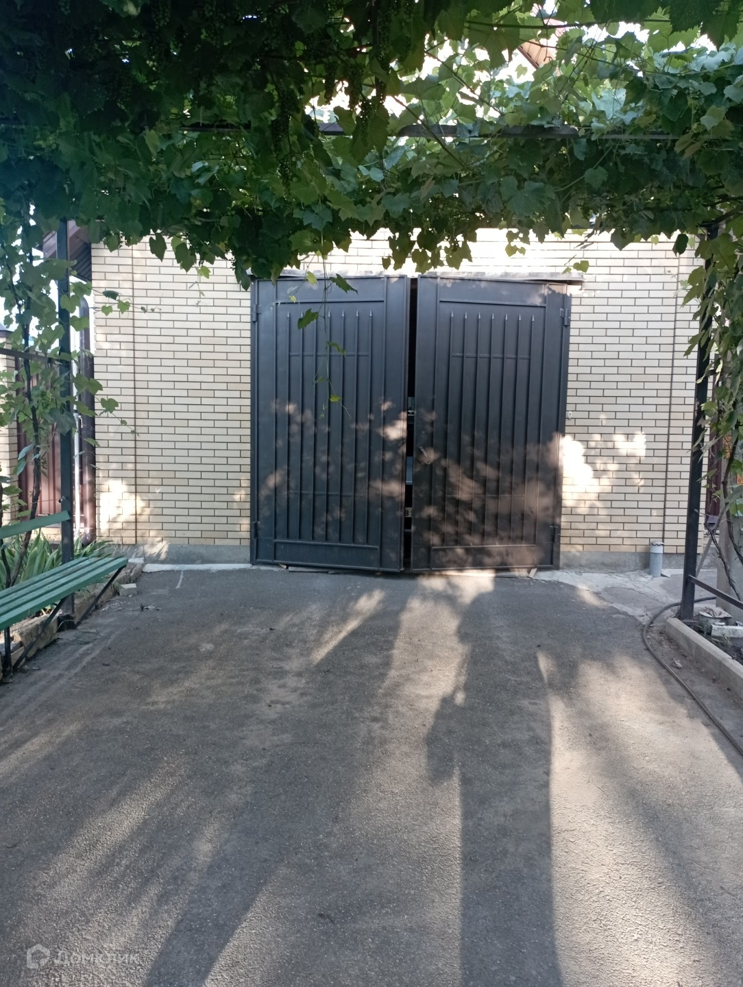 гаражом расположена большая арка с винным виноградником.