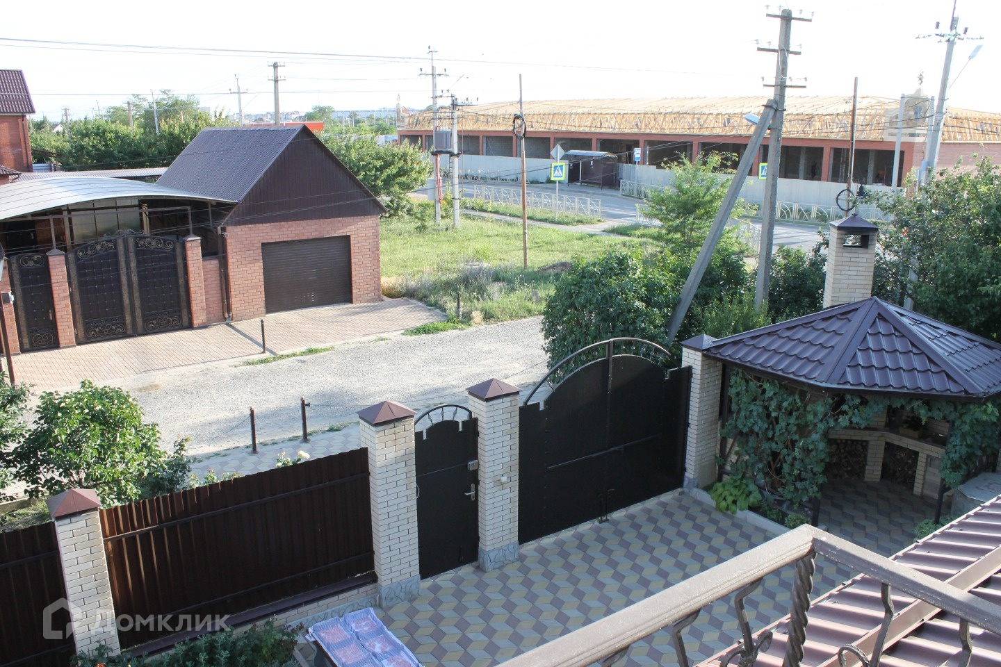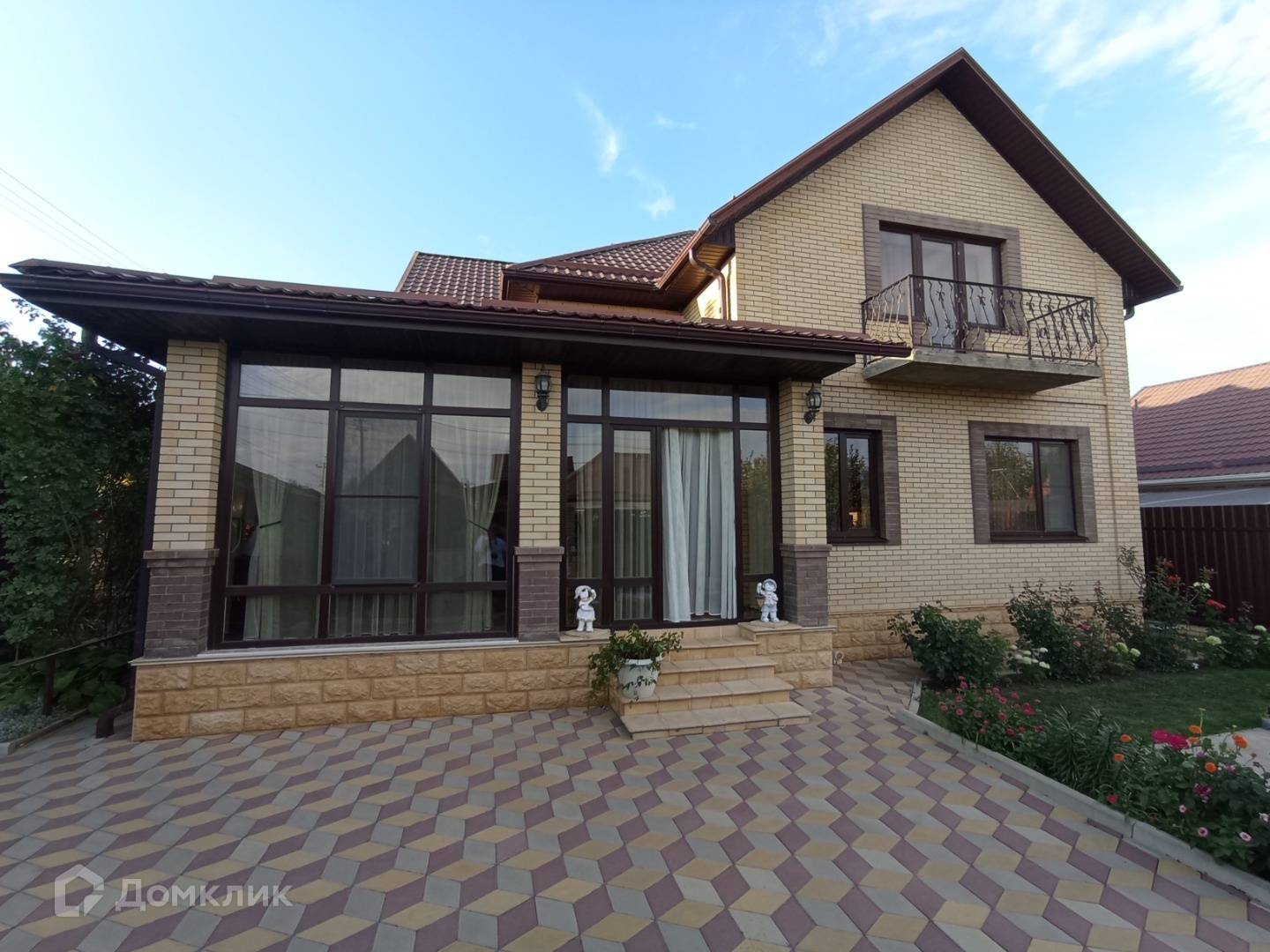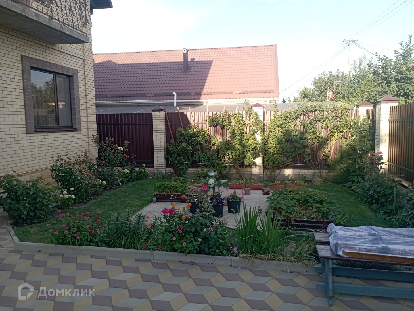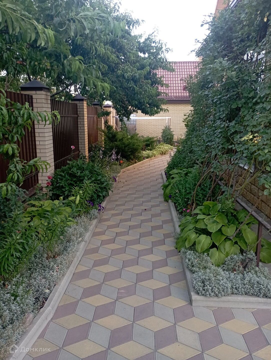 Двор выстелен тротуарной плиткой.