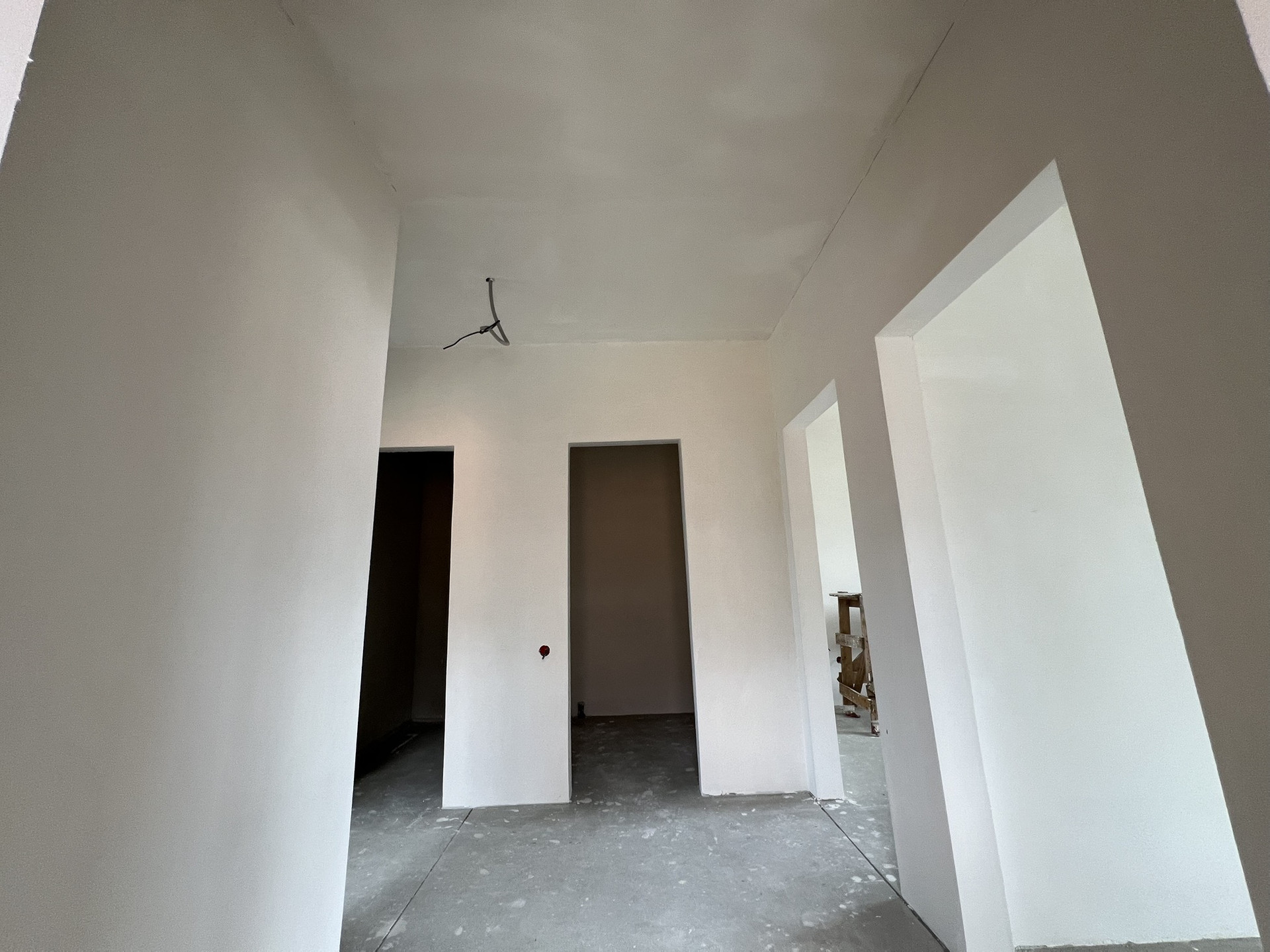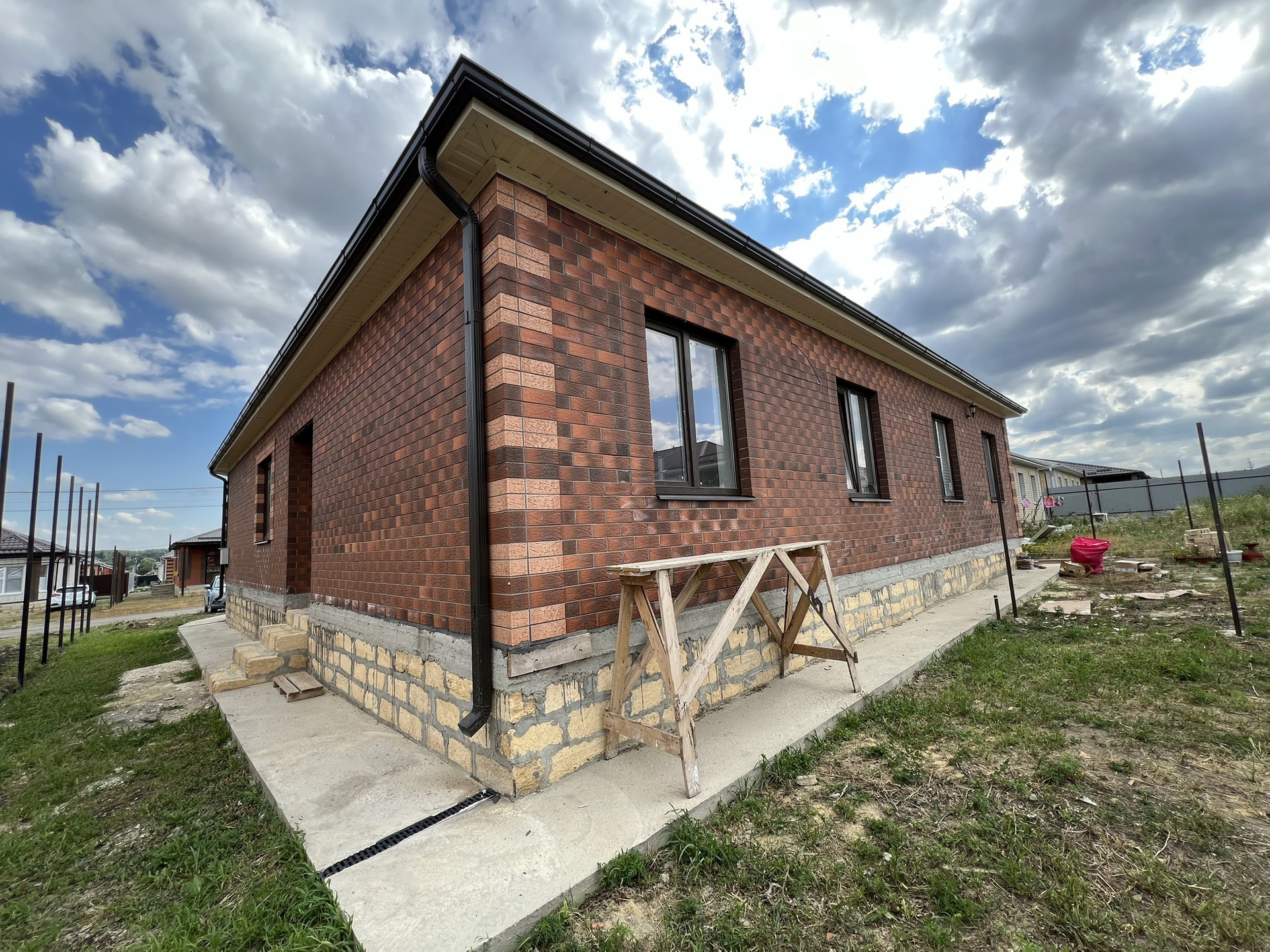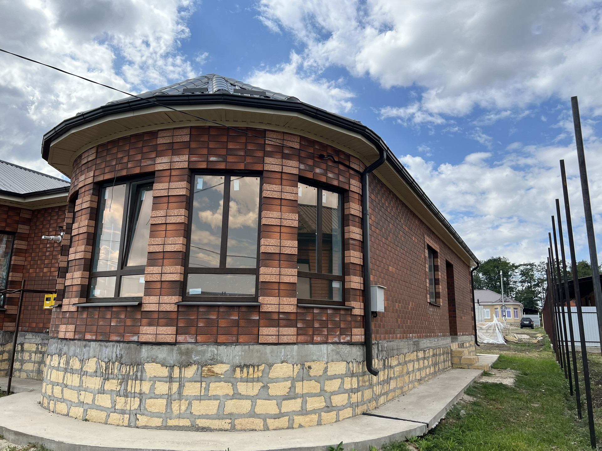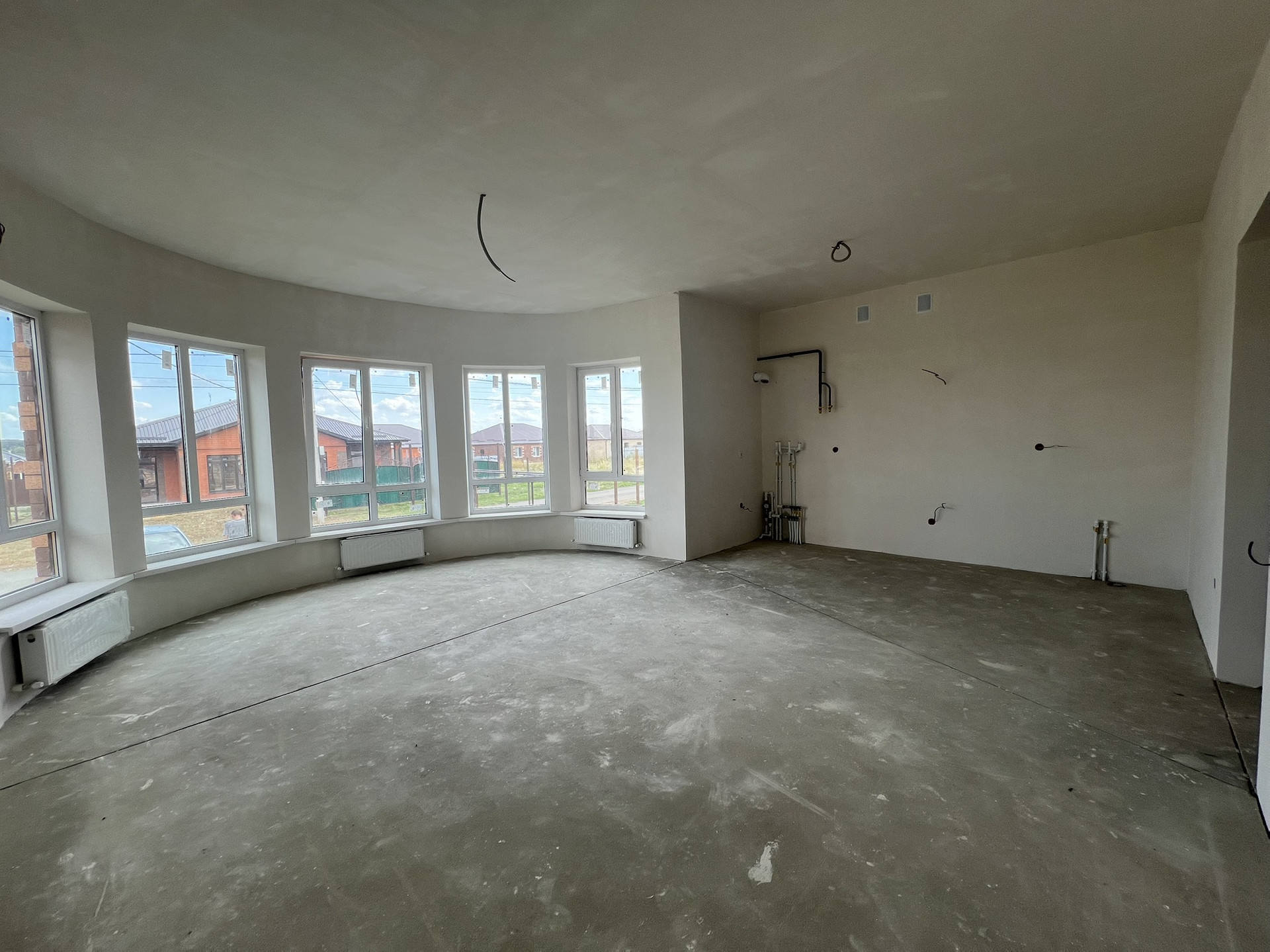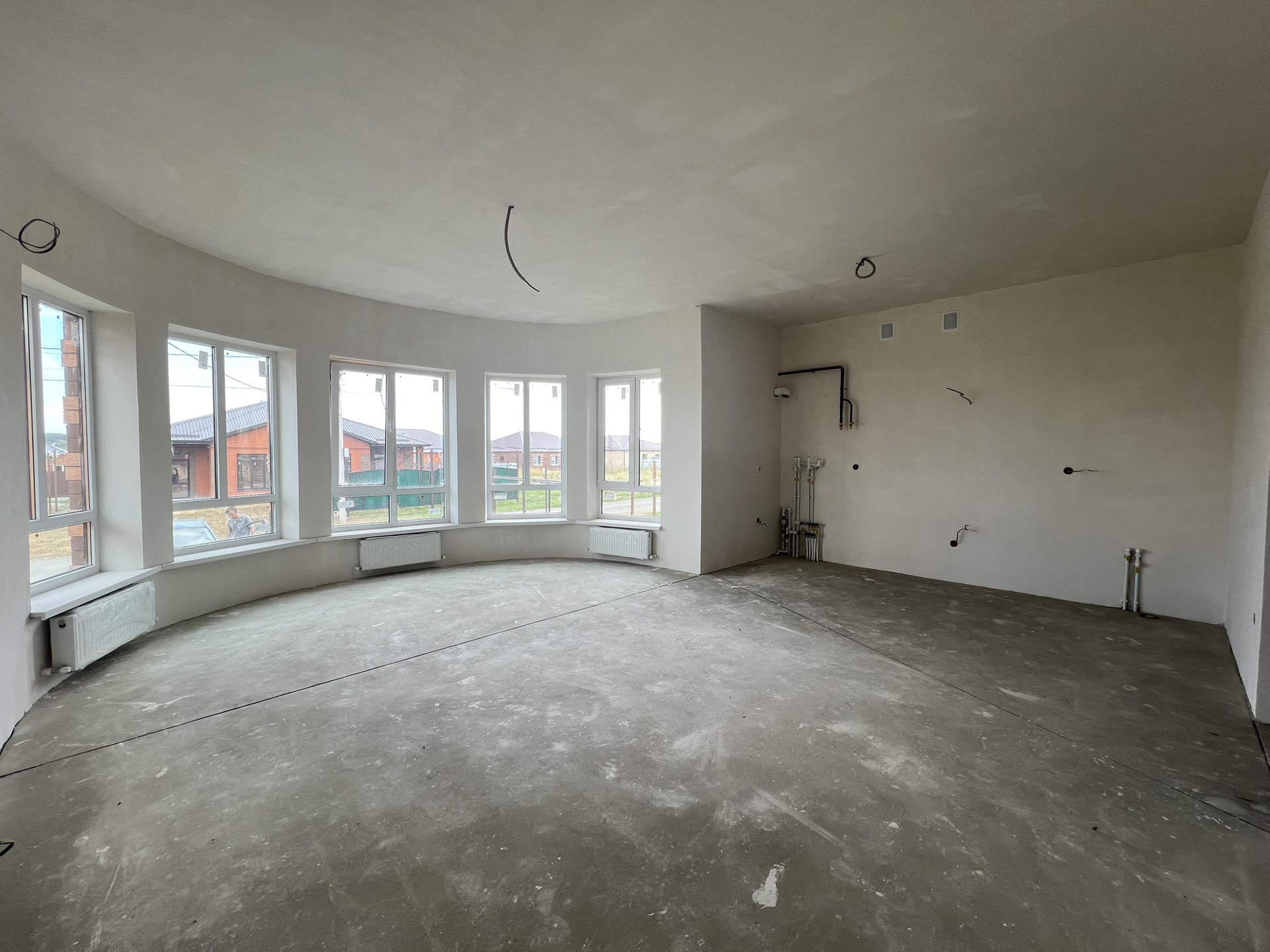 В коттедже установлены радиаторы отопления, котел-колонка . Теплые полы везде кроме спален, стяжка, штукатурка, разводка электрики. Залита отмостка  по периметру дома