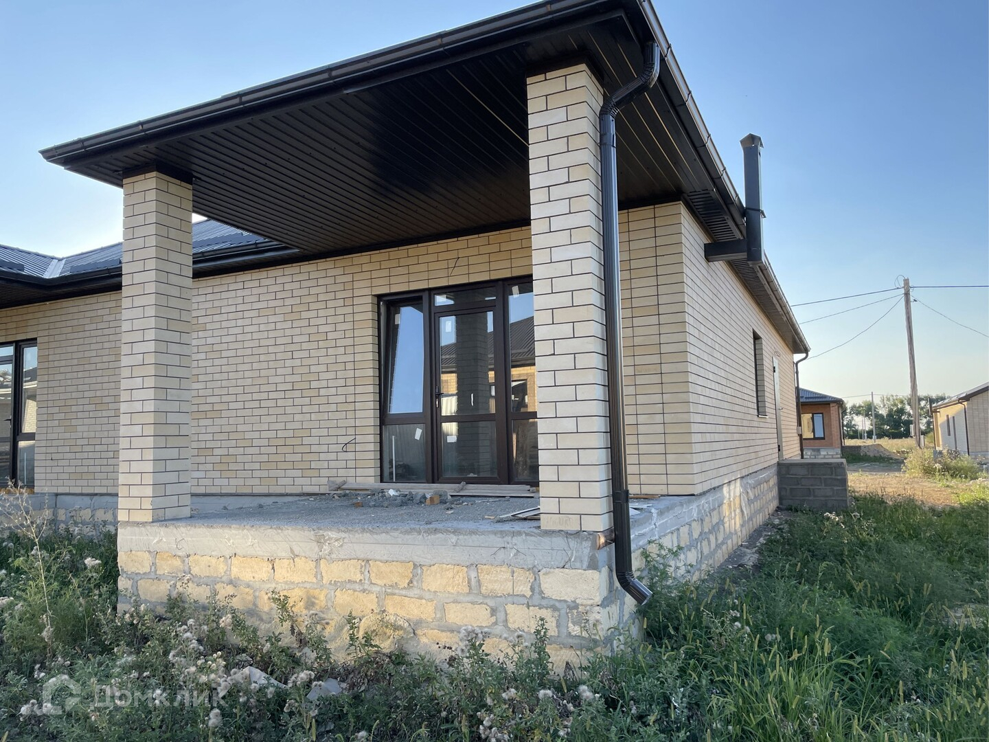 Предчистовая отделка .Облицован желтым силикатным кирпичом.