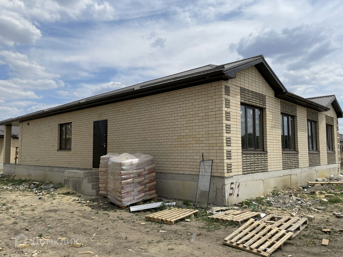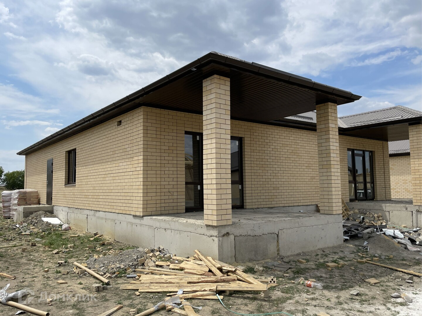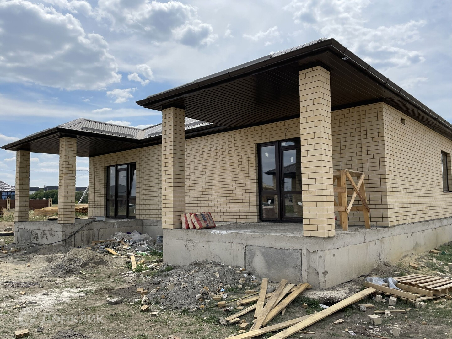 Предчистовая отделка .Облицован желтым силикатным кирпичом.