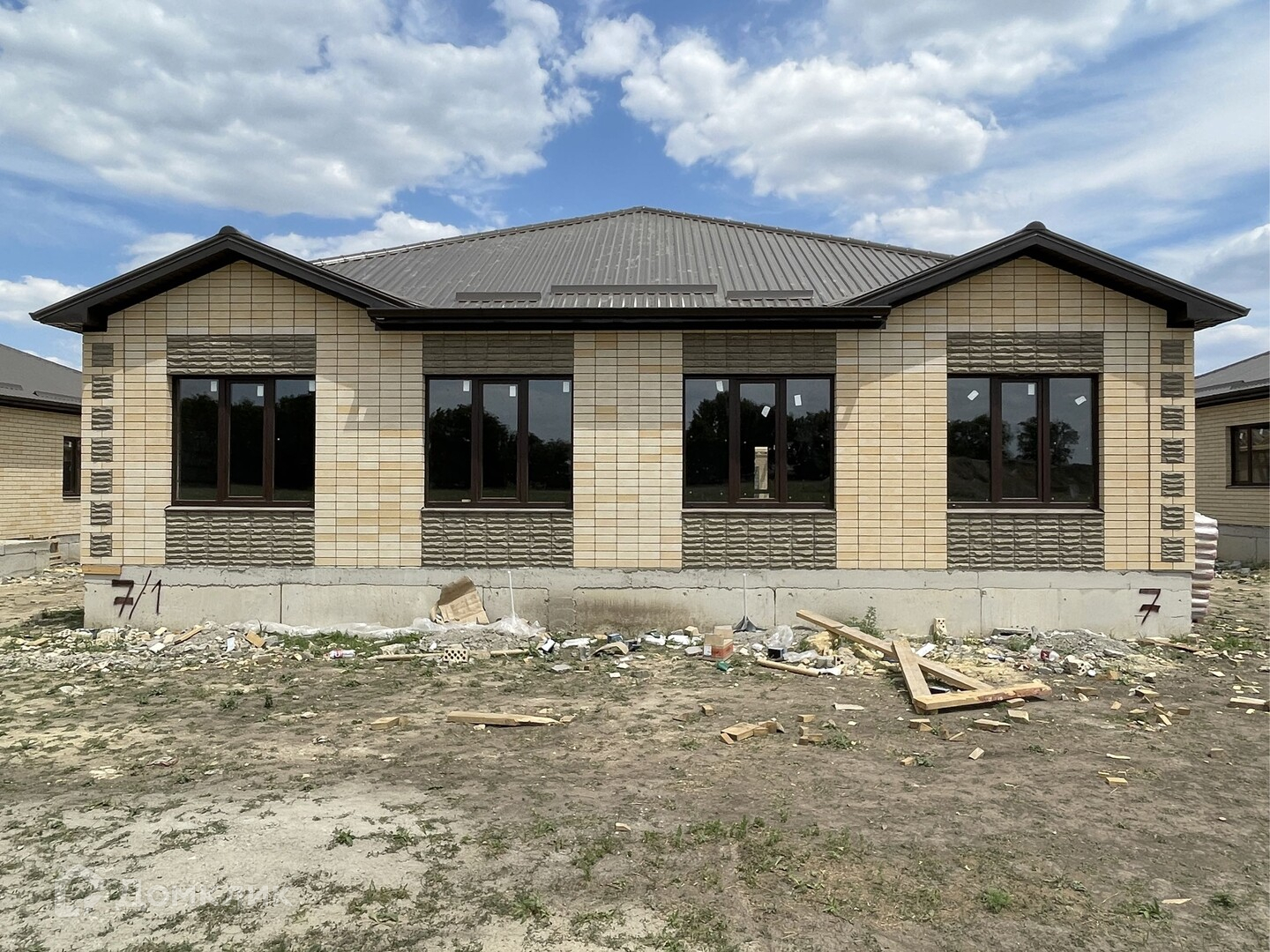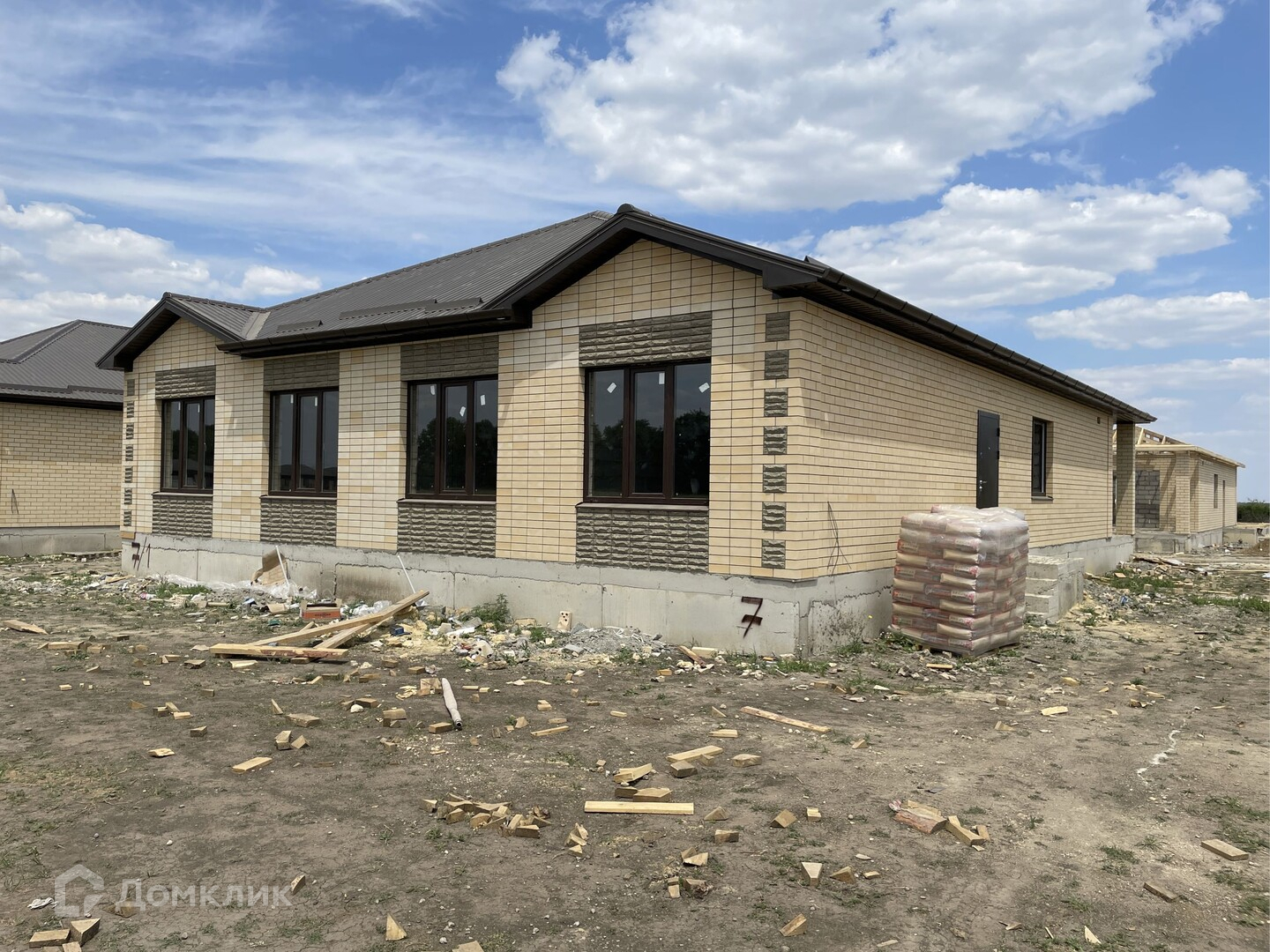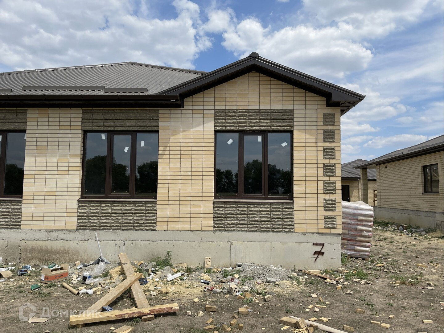 Предчистовая отделка .Облицован желтым силикатным кирпичом.