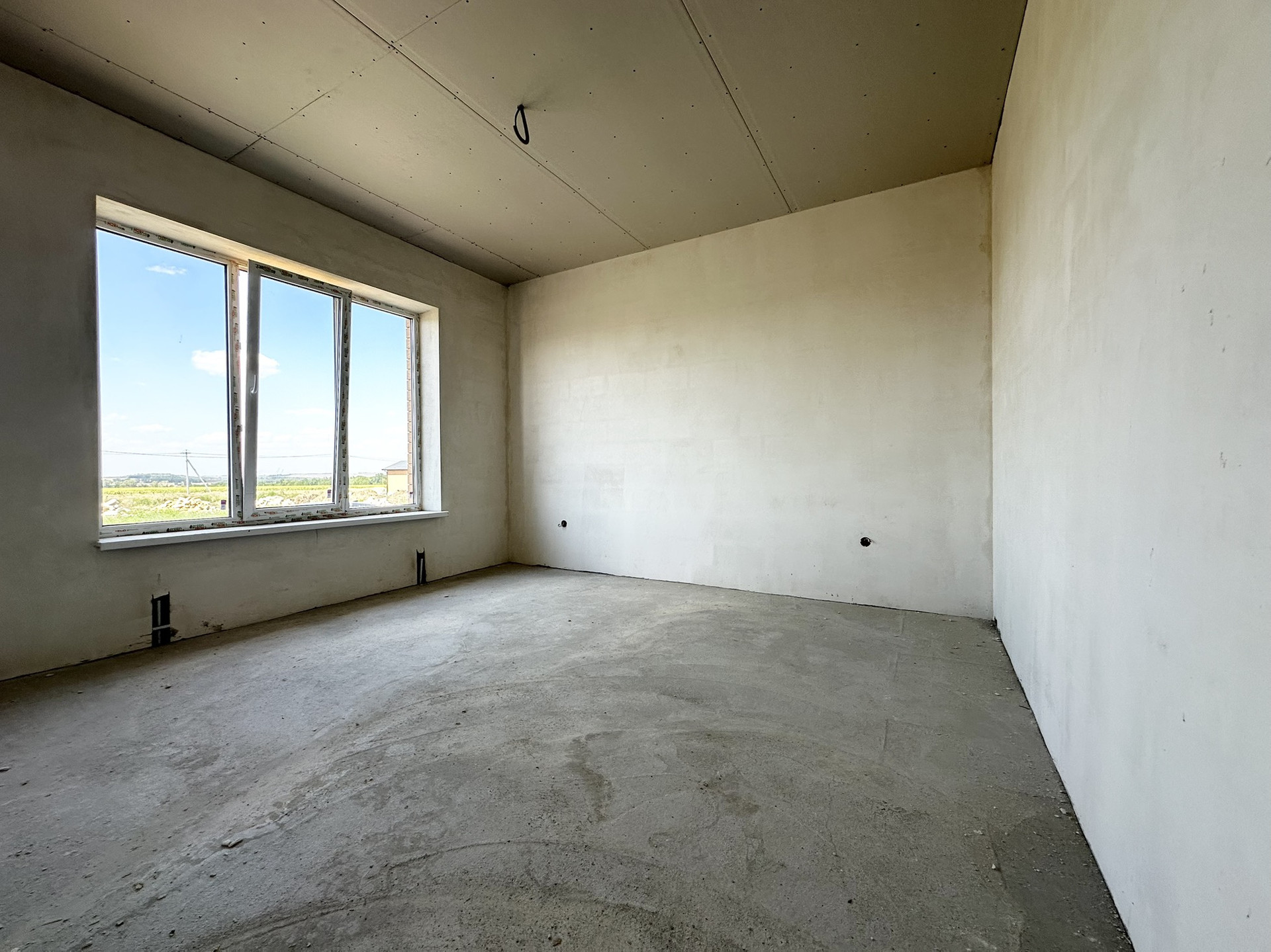 В доме 3 изолированные комнаты, большая кухня-гостиная с выходом на крытую террасу, гардеробная, санузел раздельный.
