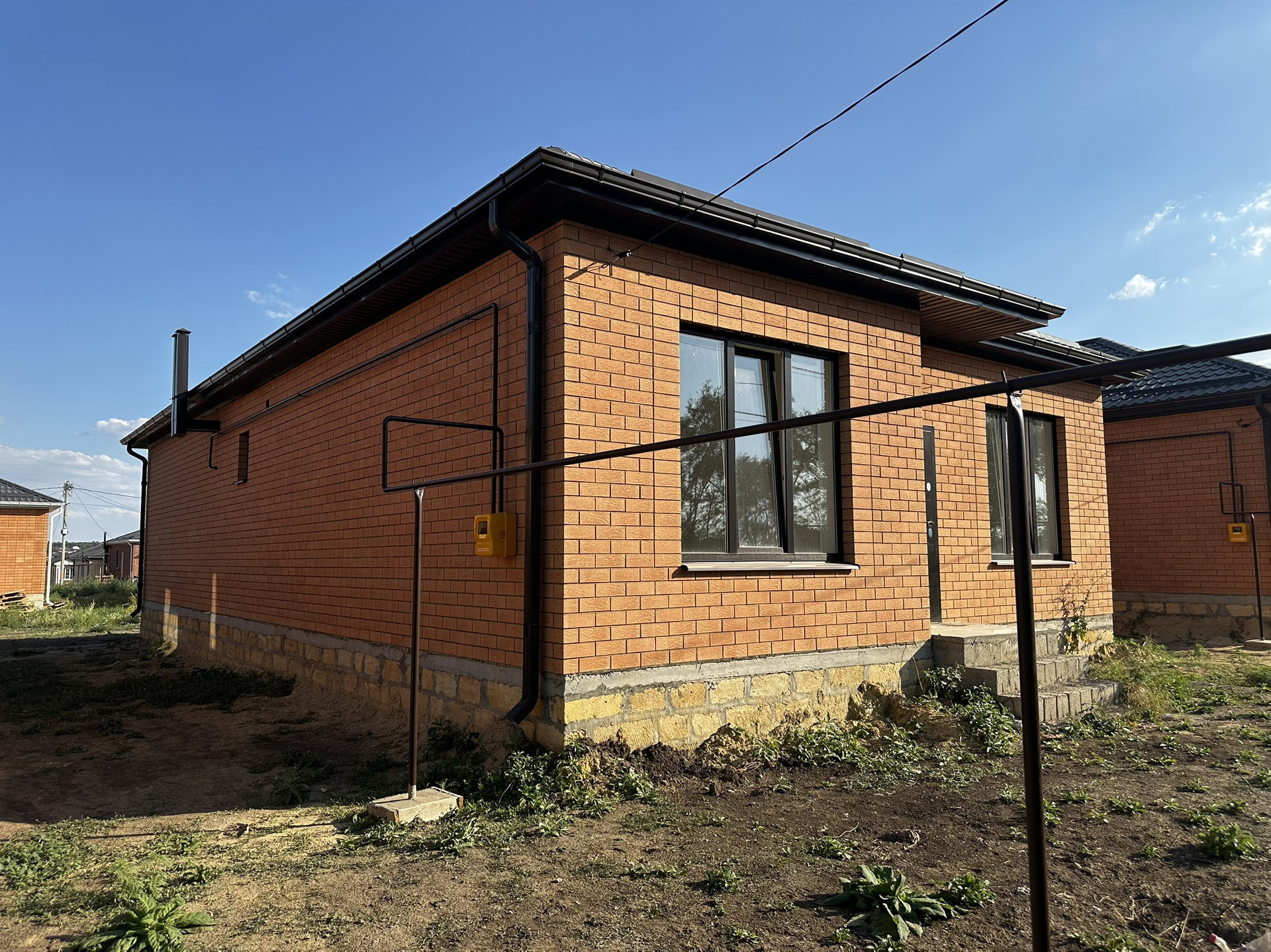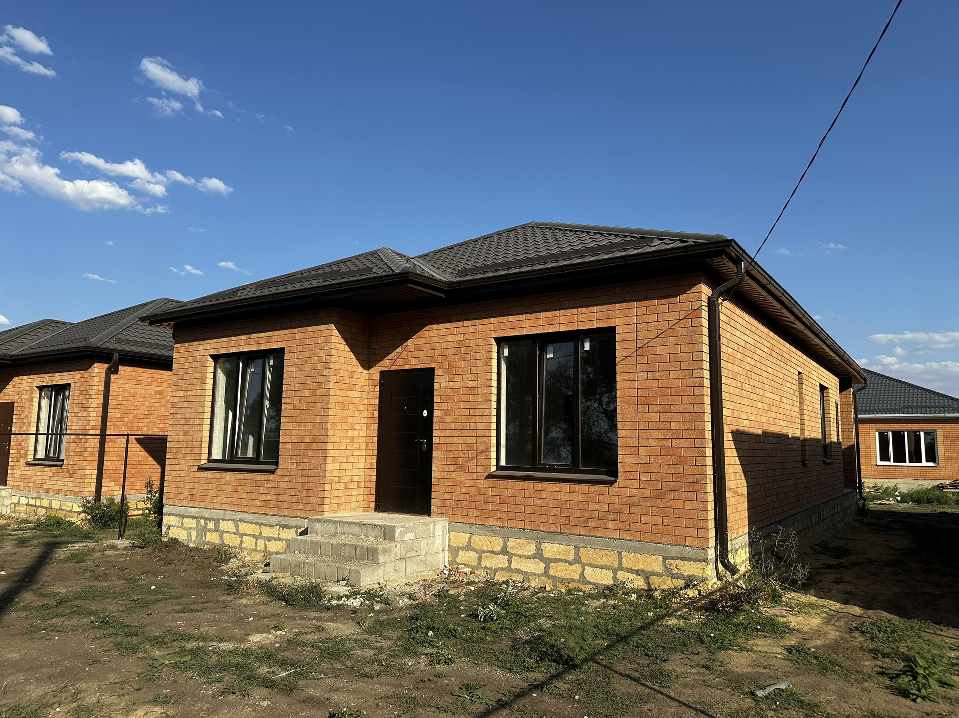 Построен дом из самых качественных материалов согласно всех строительных норм и правил. Окна энергосберегающие, крыша металлочерепица, потоки утеплены и подшиты гипсокартоном. Отопление двухконтурный котёл-колонка, теплые полы везде кроме спален.