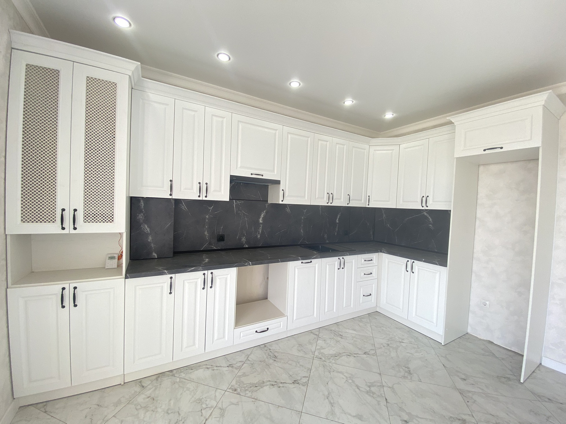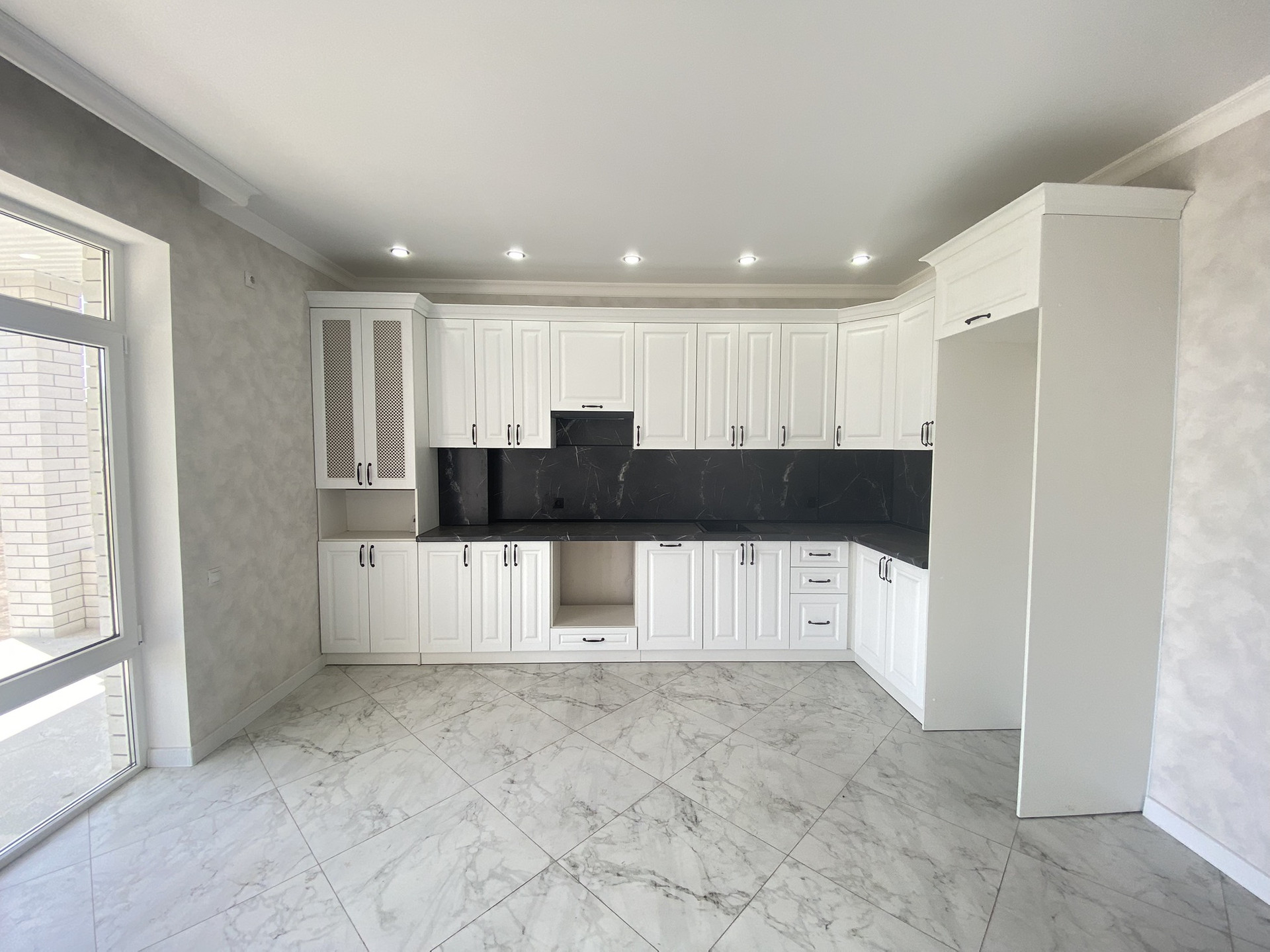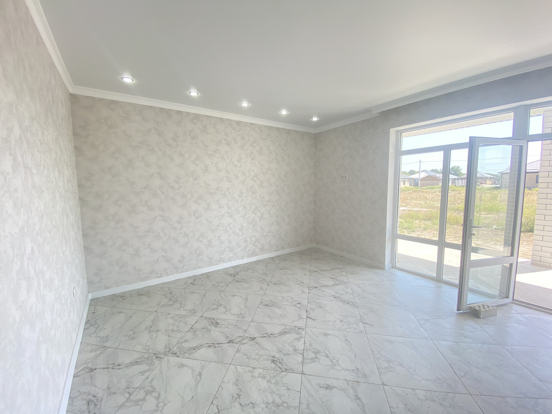 ПРОСТОРНАЯ СВЕТЛАЯ КУХНЯ-ГОСТИНАЯ С ВЫХОДОМ НА КРЫТУЮ ТЕРРАСУ( на всю ширину коттеджа)