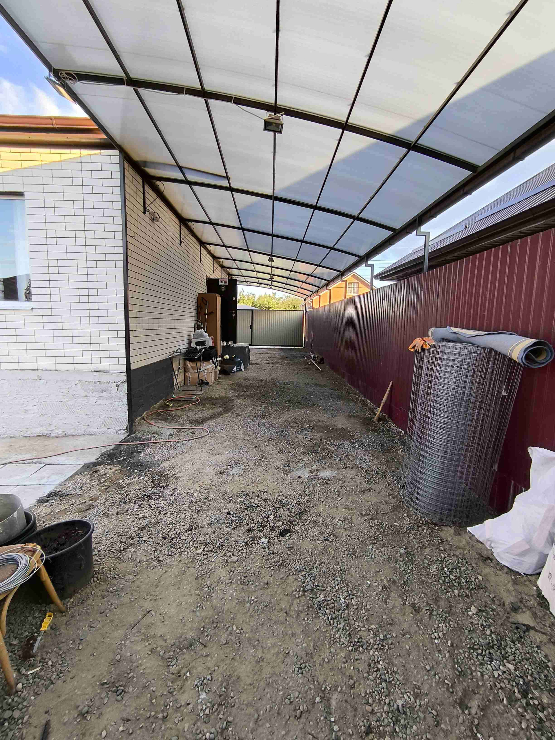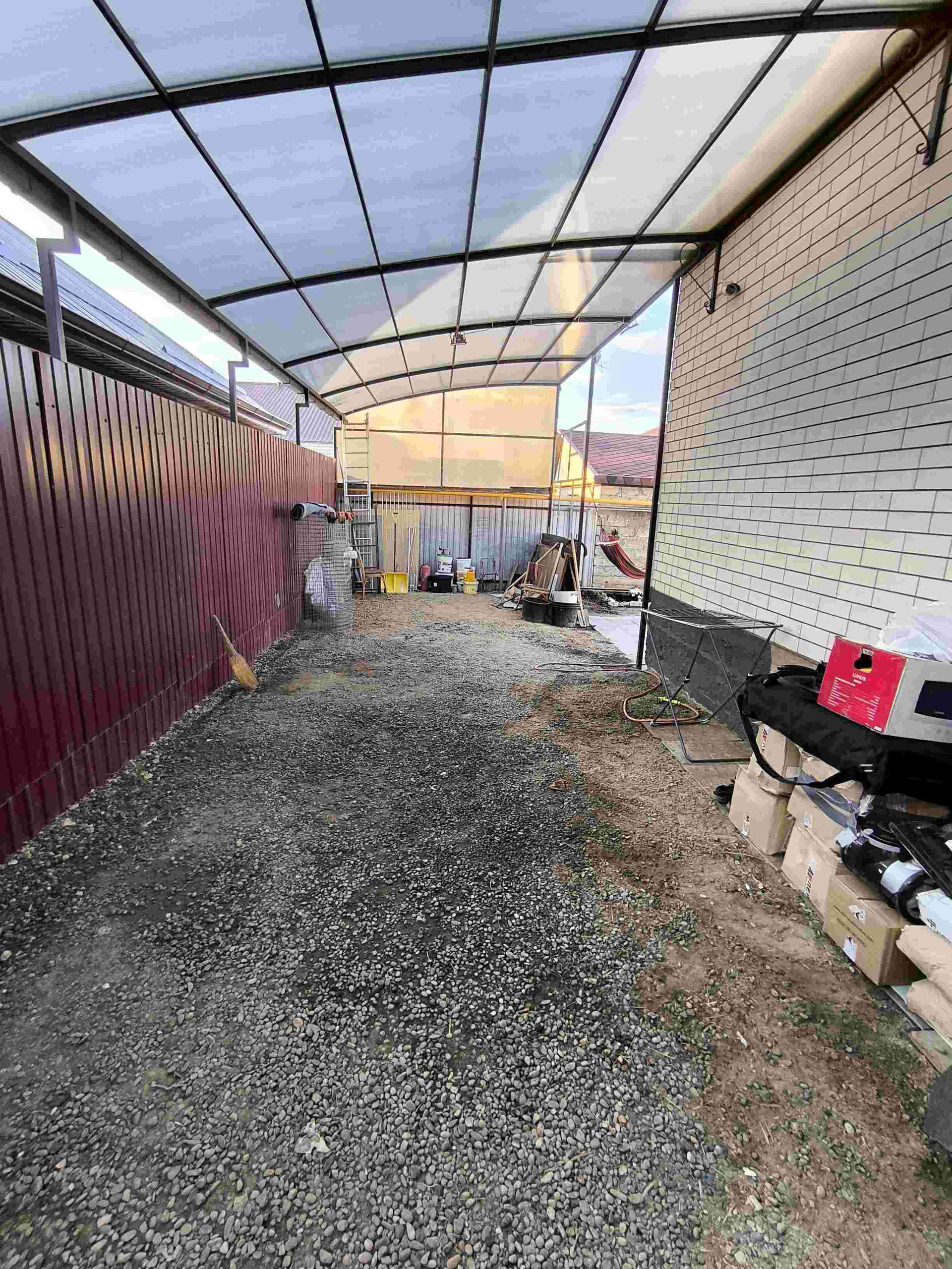 Полностью по длине участка протянут навес, это неоспоримое преимущество!