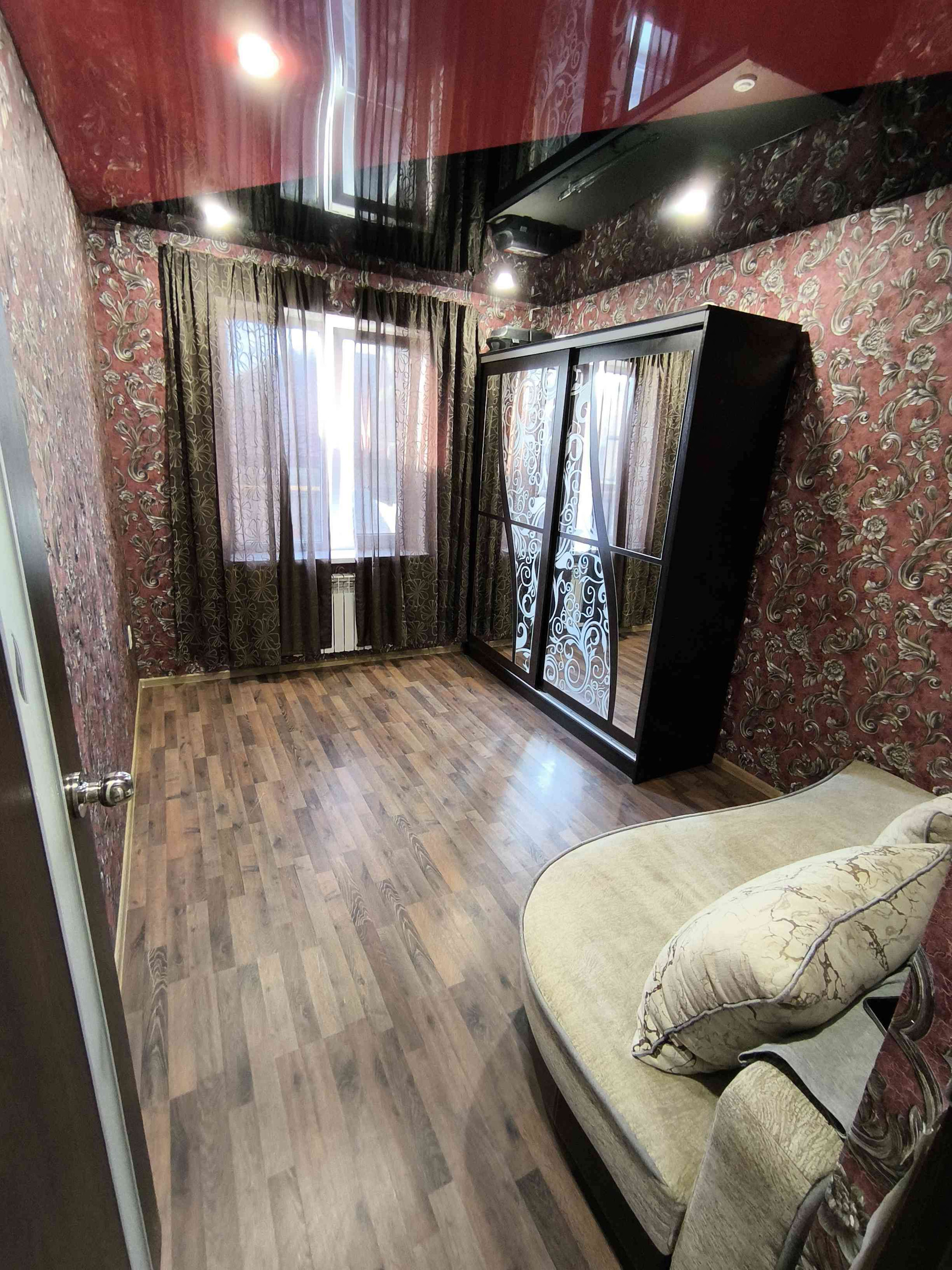 натяжные потолки во всех комнатах,