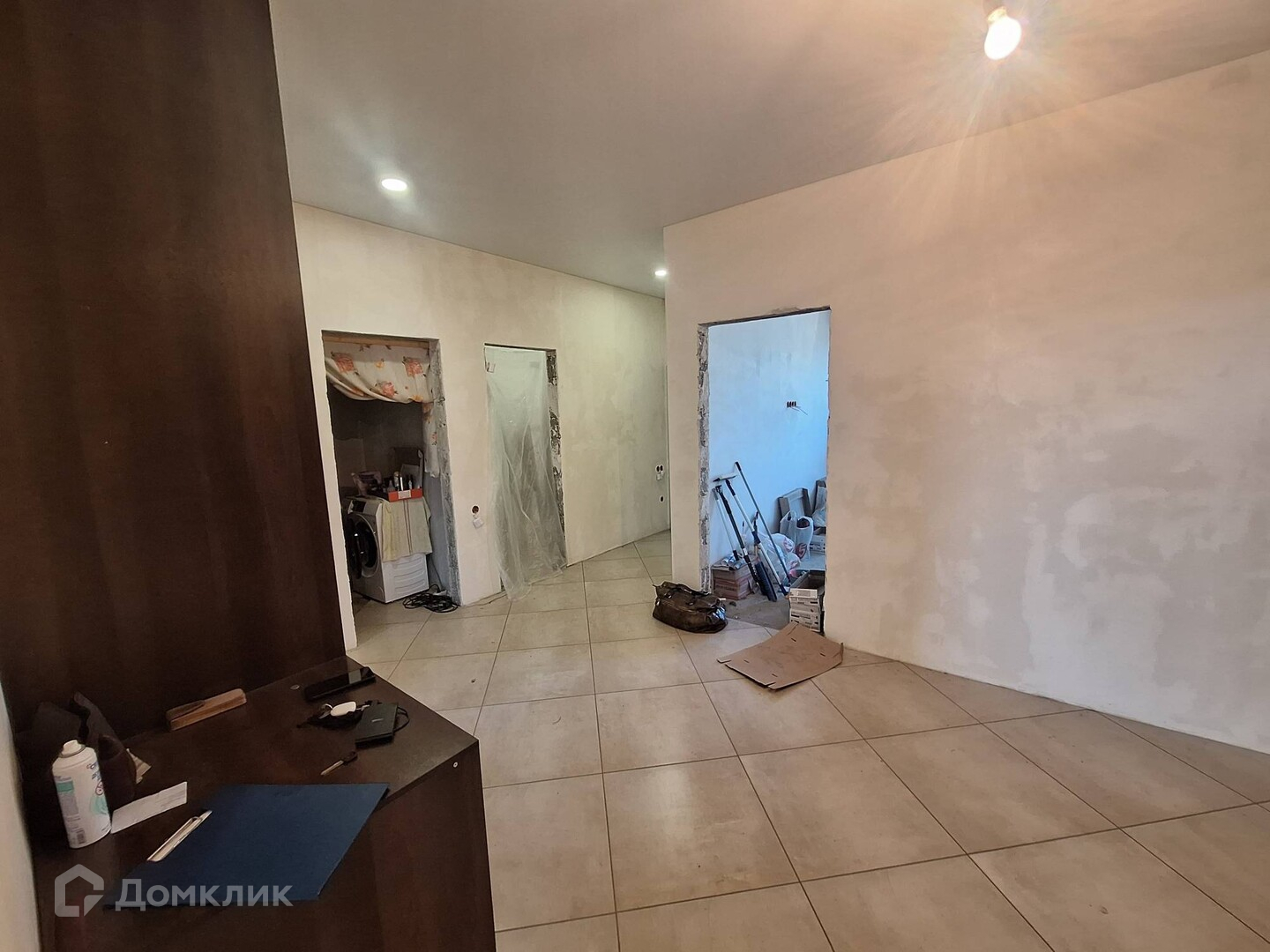 - Сделан частично ремонт, плитка в коридоре, кухне, на туалет и гардеробную куплена. Поклеины обои в кухне - гостиной. Натяжные потолки сделаны на 50 %