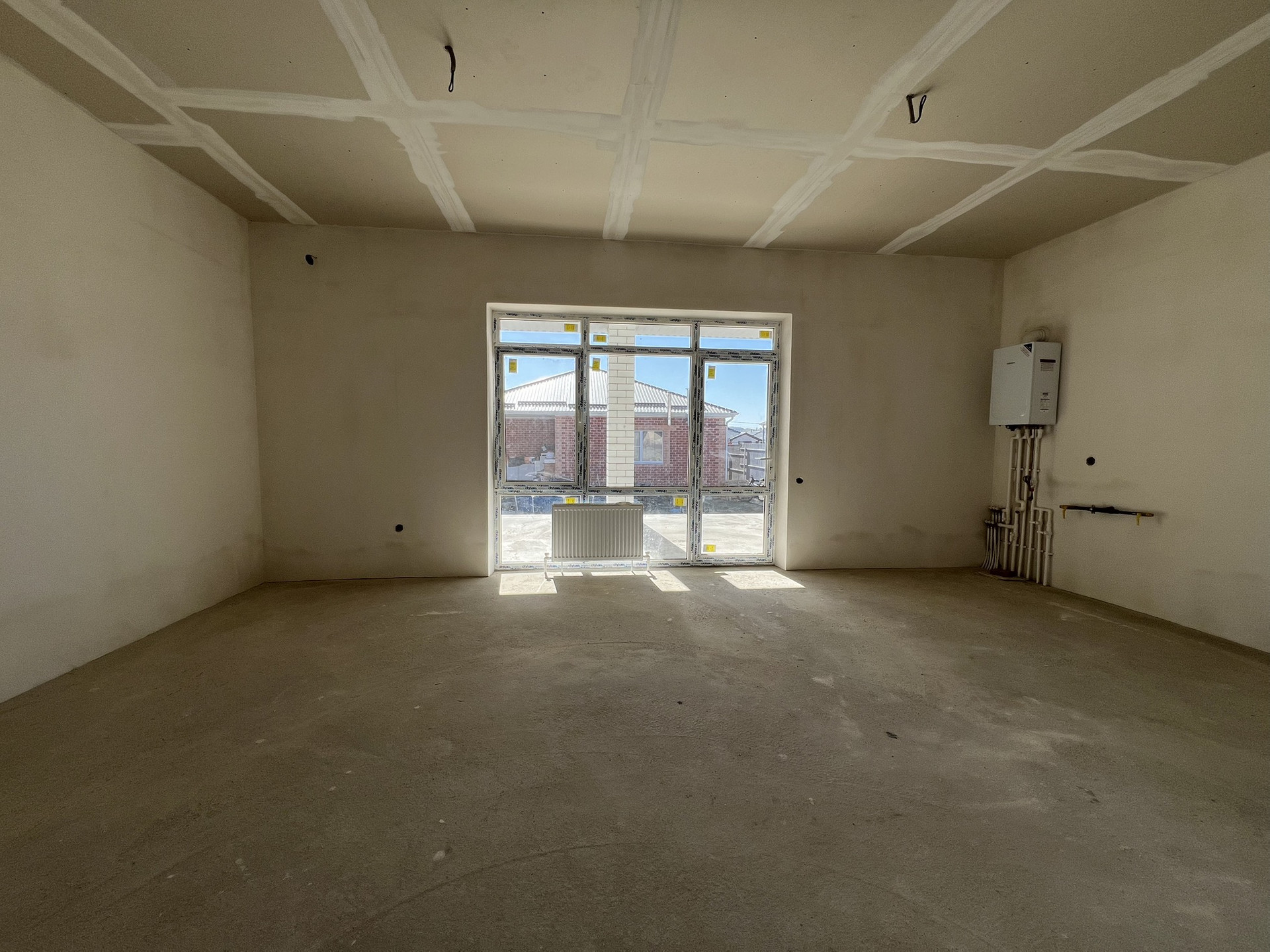 В коттедже установлены радиаторы отопления, котел-колонка . Теплые полы везде кроме спален, стяжка, штукатурка,, разводка электрики.