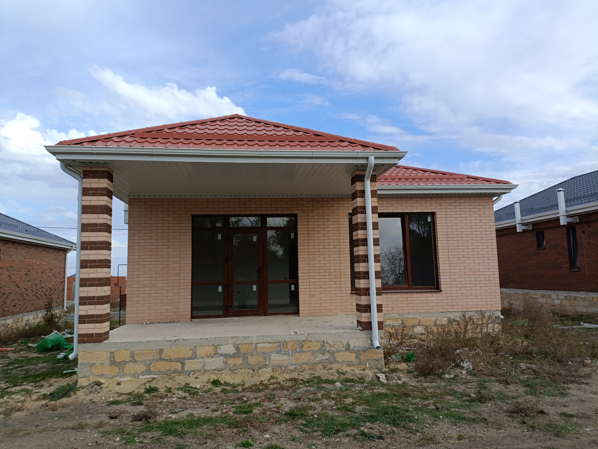 135 м. кв., 3 изолированные комнаты,  кухня + гостиная с выходом на террасу, теплые полы, дом построен на монолитной плите , все работы выполнены из дорогих качественных материалов , чистовая отделка под обои , стены и крыша утеплены , водосточная система.