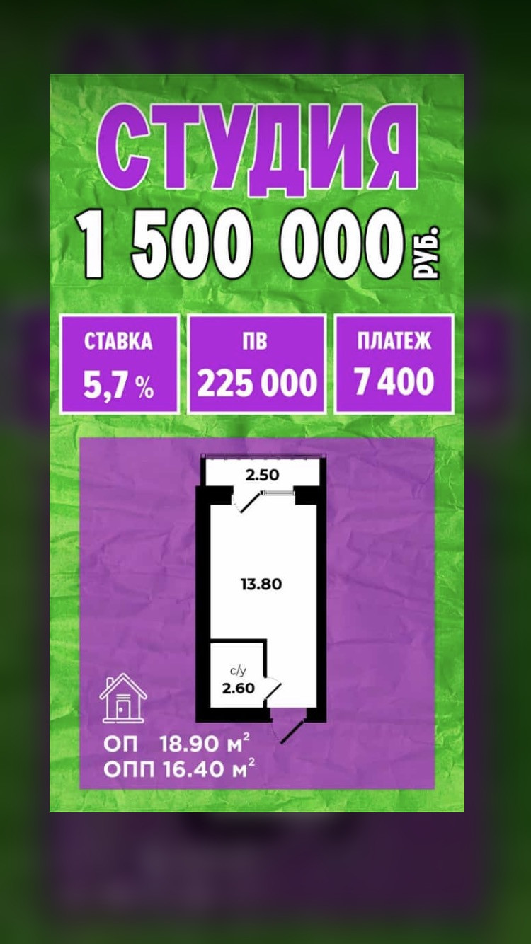 ✅Квартира-студия 19м2 .. есть два варианта : с застекленным балконом и без застекления !