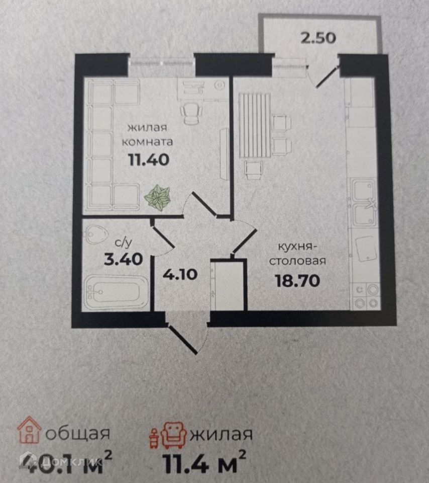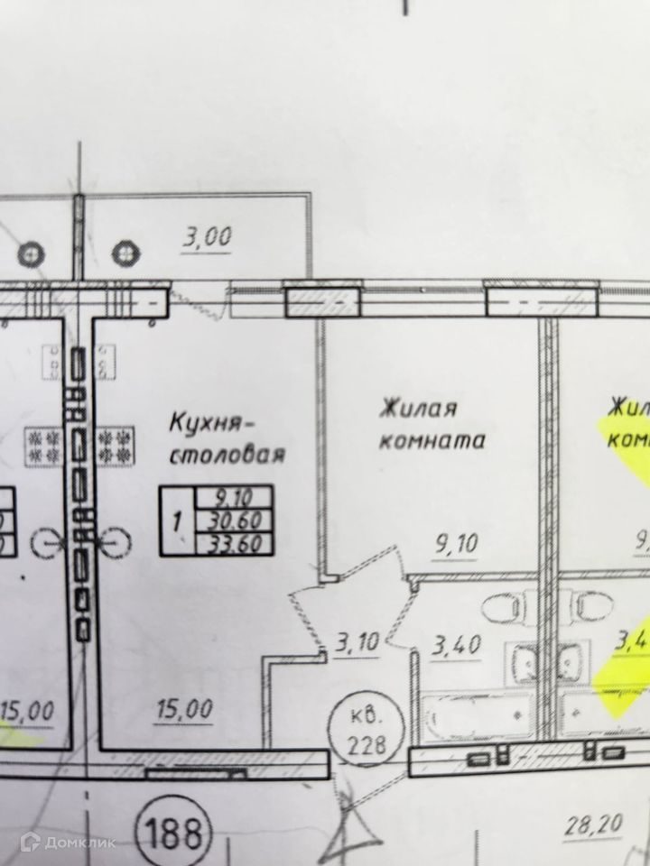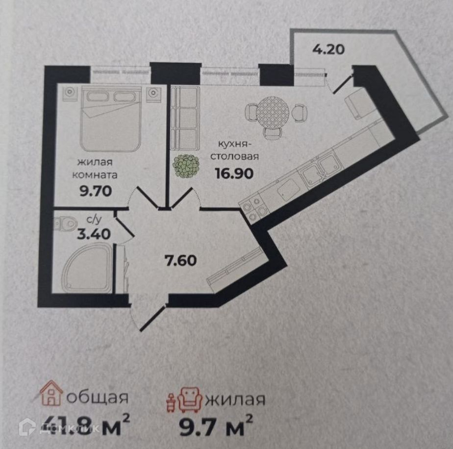 Общая площадь 33.6 м2