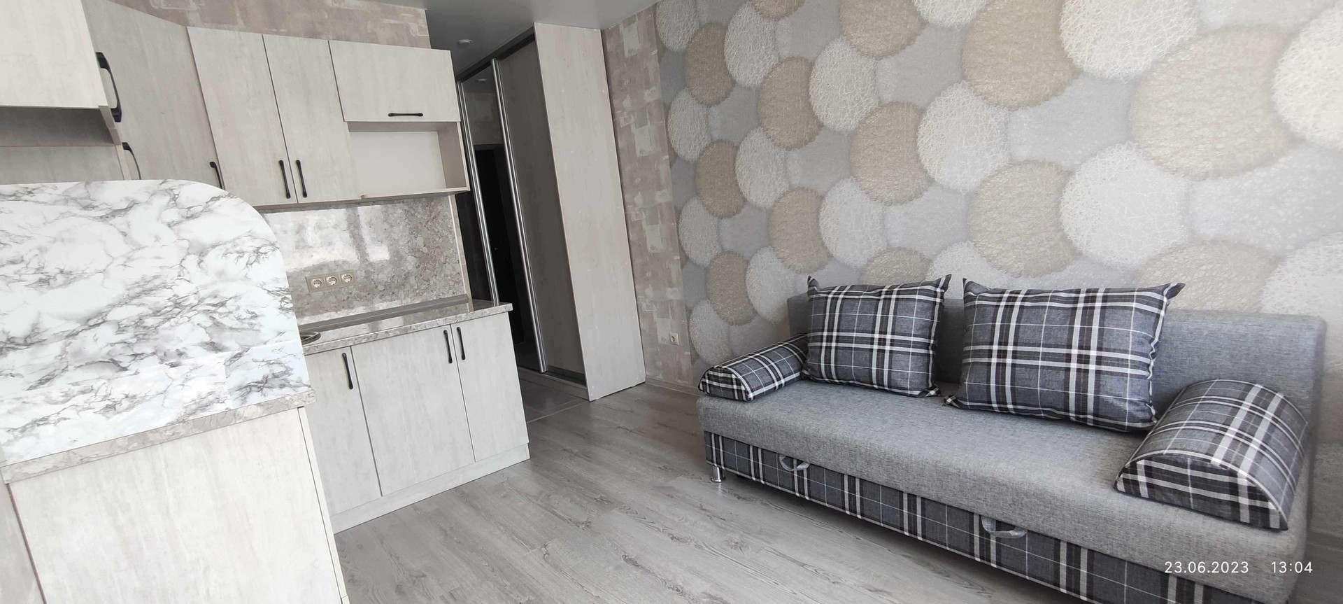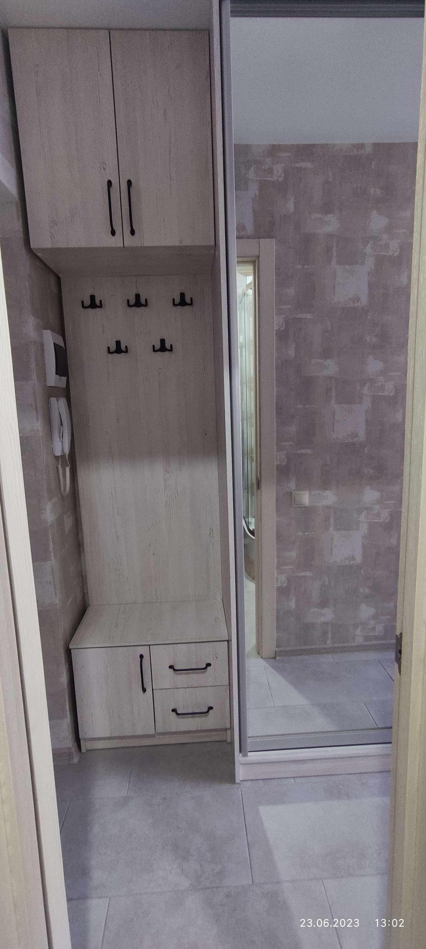 Кухня и шкаф купе сделаны на заказ. Диван раскладывается в полноценное спальное место (185*140) Шкаф купе с зеркалом и прихожей вместительный. Мест для хранения в квартире достаточно.