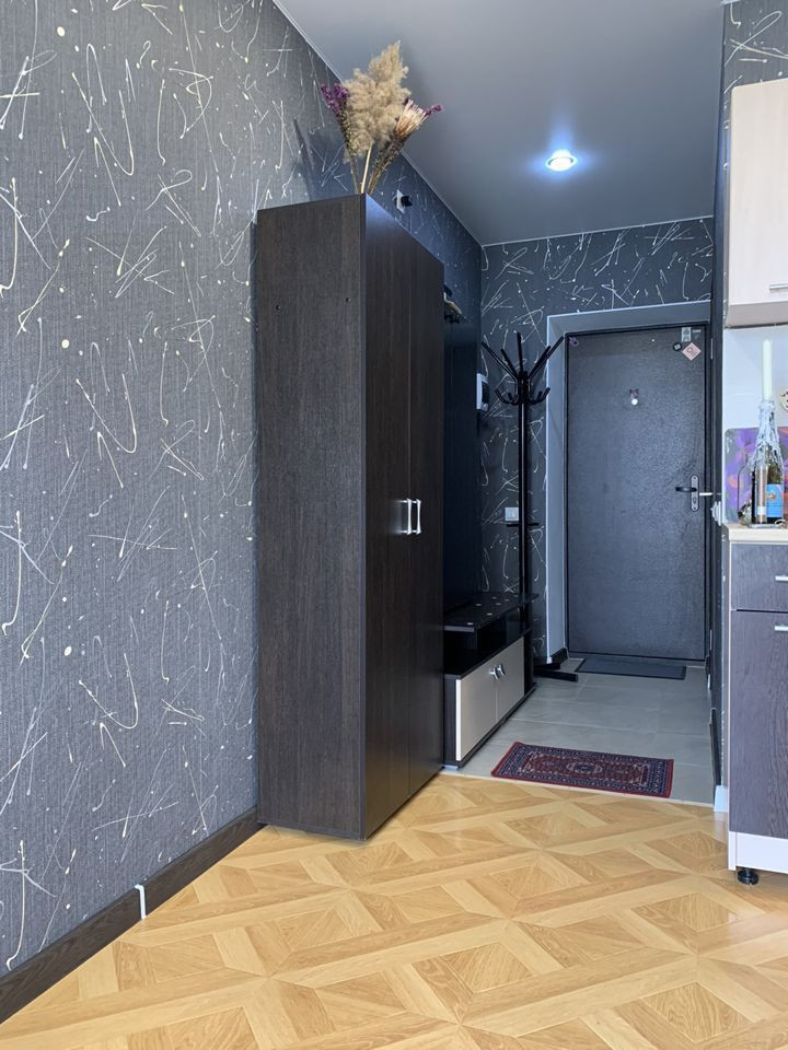 Студия с отличным ремонтом. В отличии от всех остальных квартир студий такого типа , у вас будет предквартирный коридор на 4 кв. м. Установлены пластиковые двери в коридоре. Без техники и мебели цена будет ниже на 100 т.р.
