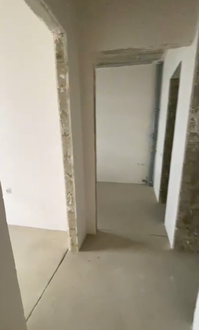 Квартира с предчистовой отделкой: стены оштукатурены, установлены котел-колонка, радиаторы отопления, розетки, выключатели, приборы учета.