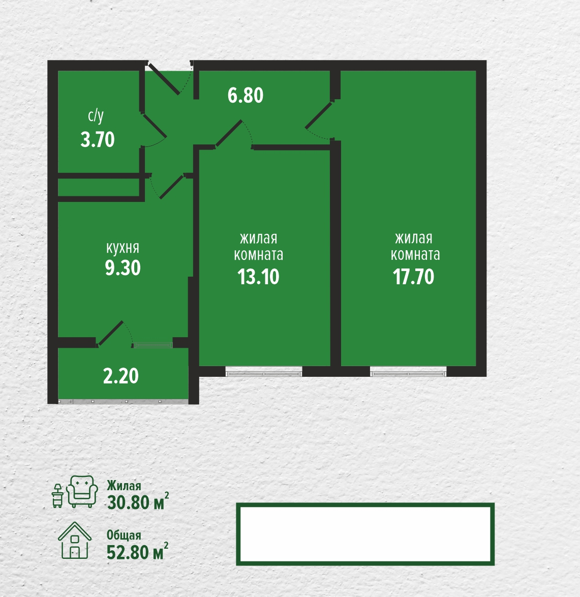Общая площадь 52.8 м2