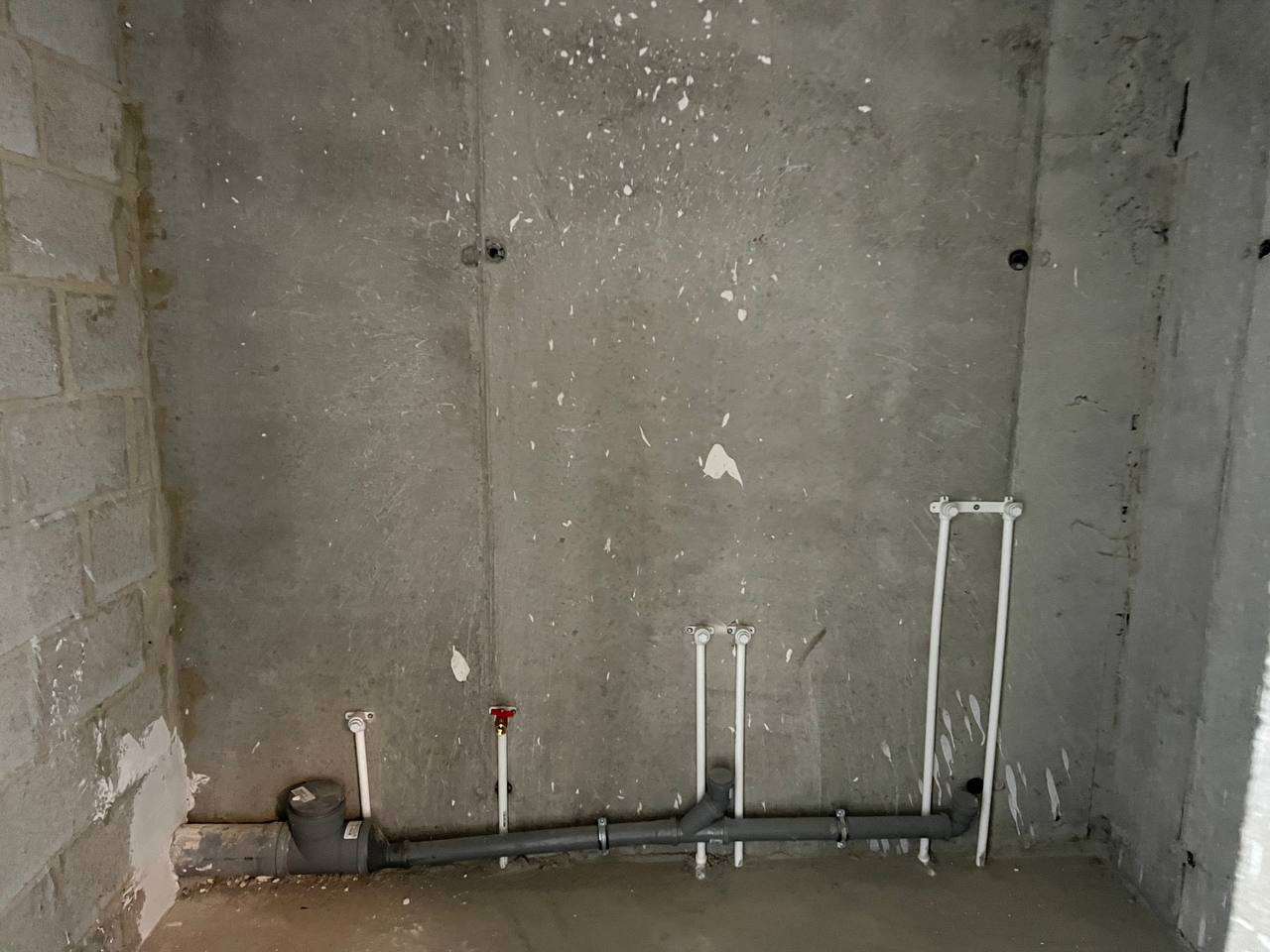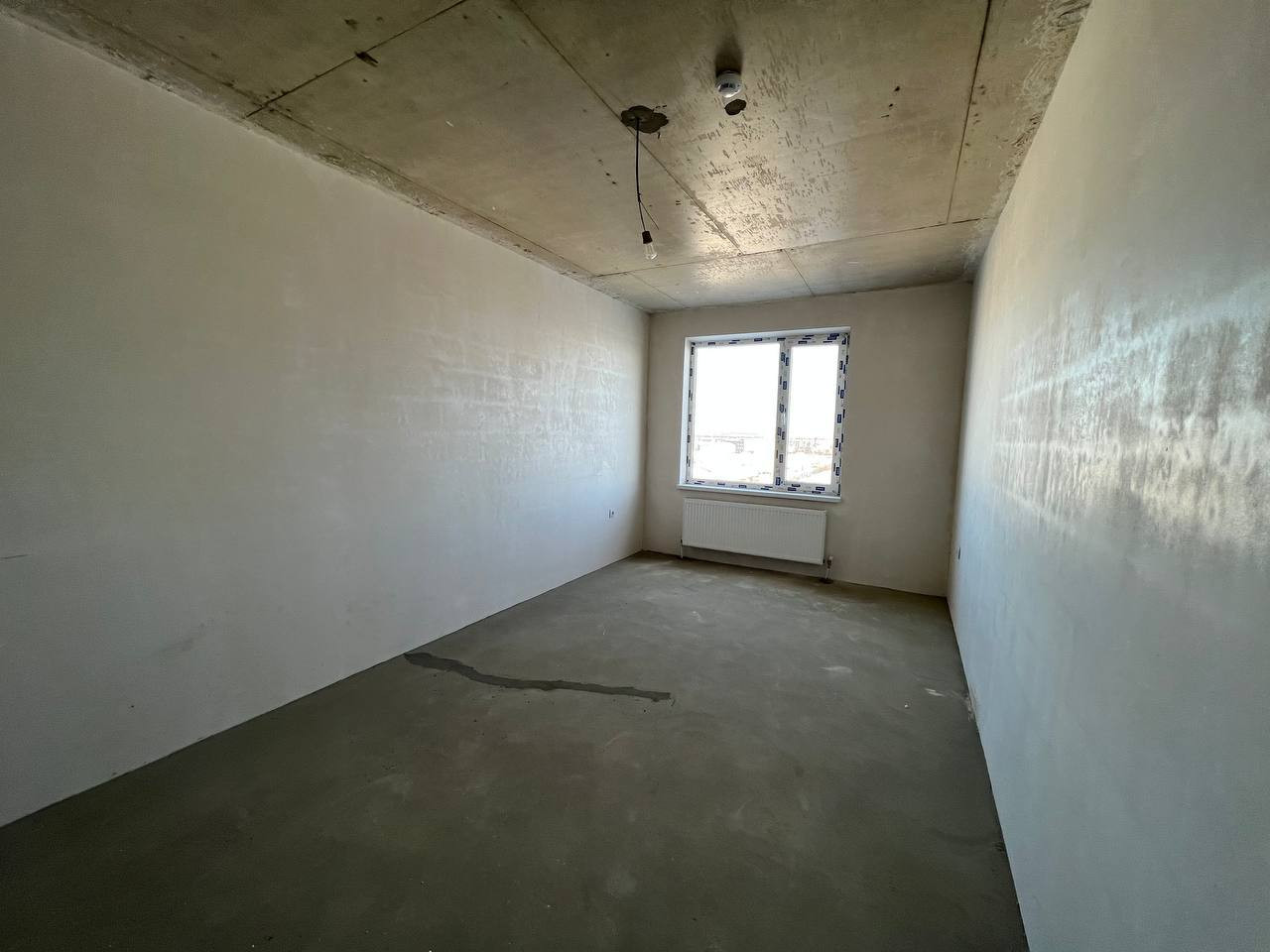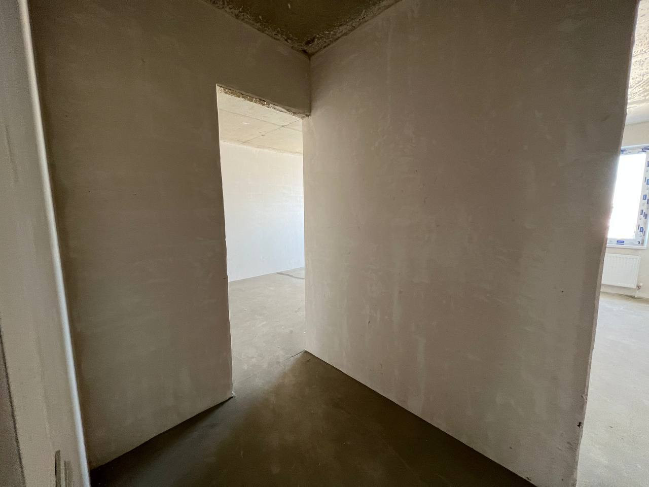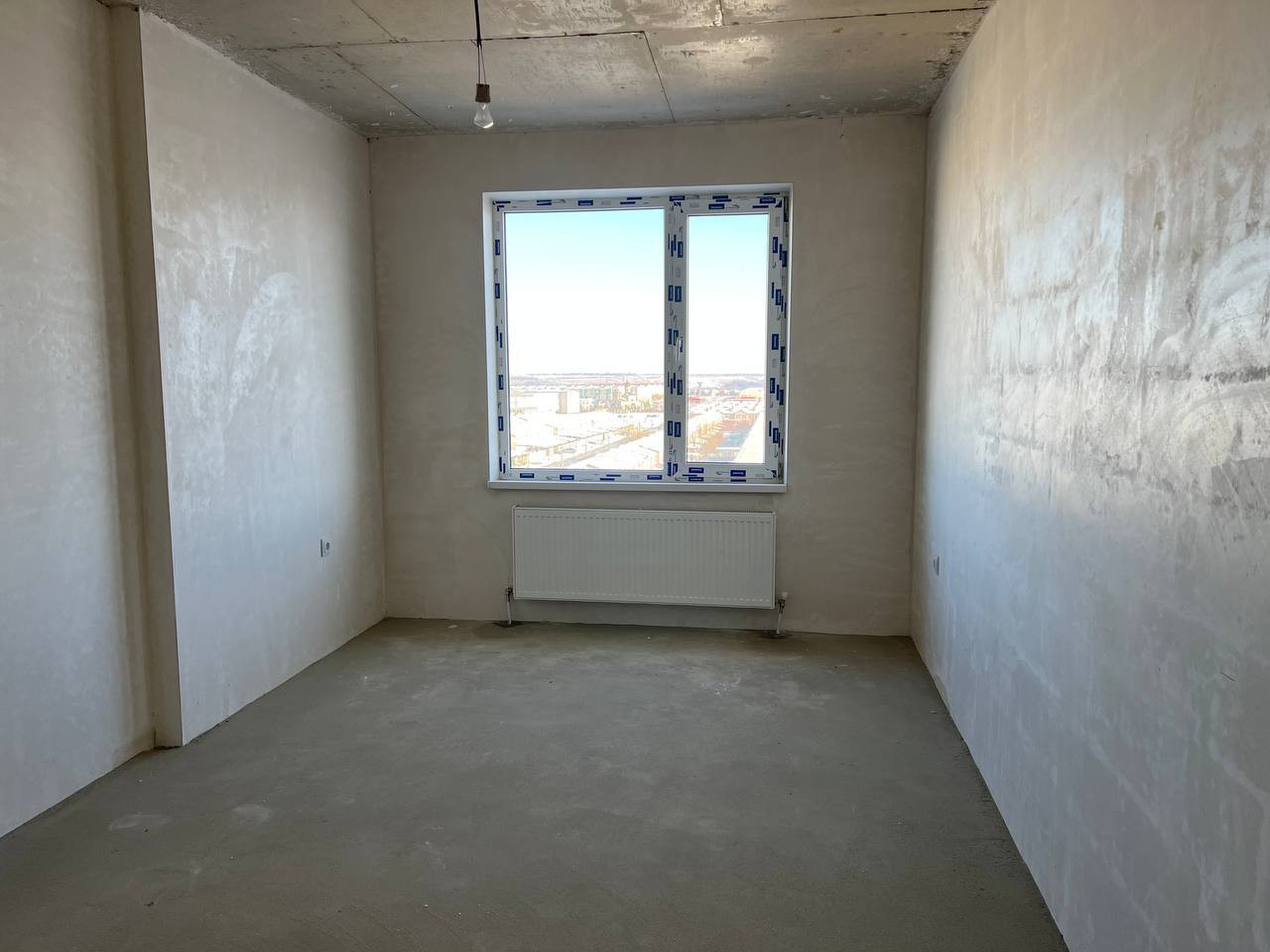 Квартира с предчистовой отделкой: стены оштукатурены, установлены котел-колонка, радиаторы отопления, розетки, выключатели, приборы учета.