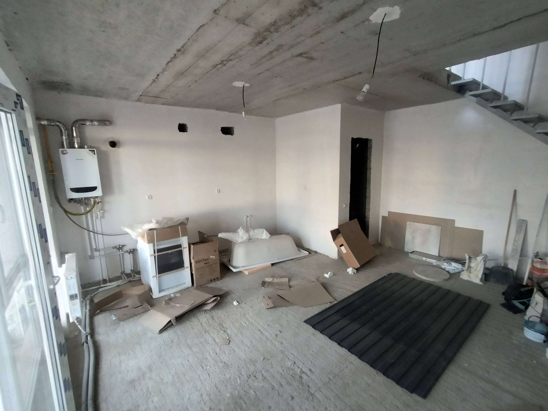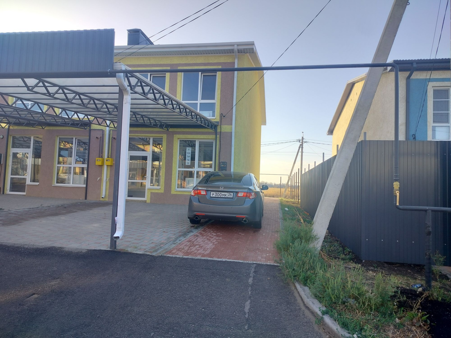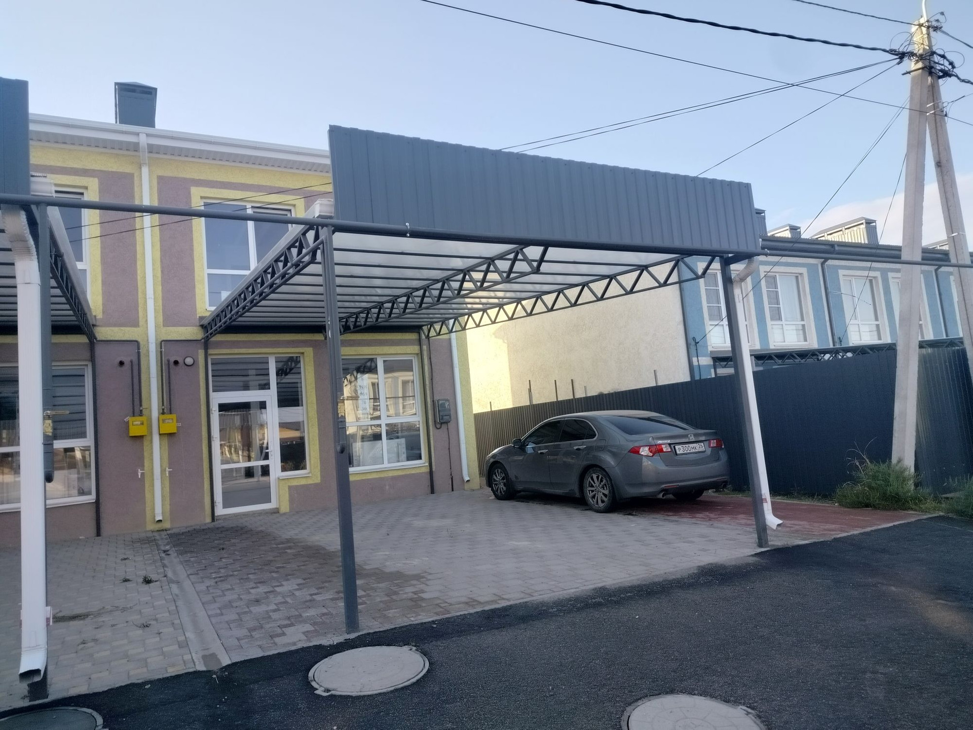 Благоустроенная территория, большой Навес, по всей территории таунхауса брусчатка, забор от соседей Осталось поставить ворота.