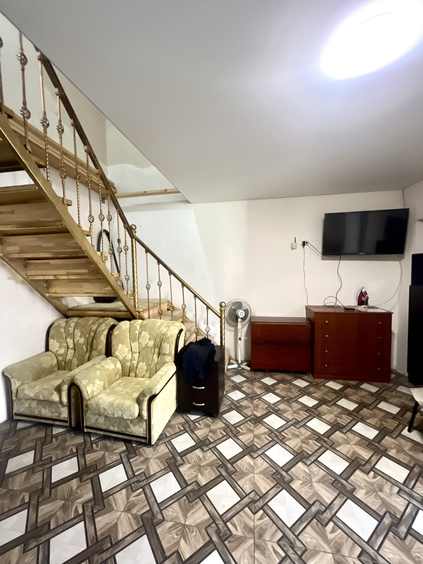 Первый этаж: большой зал, кухня,сан-узел.