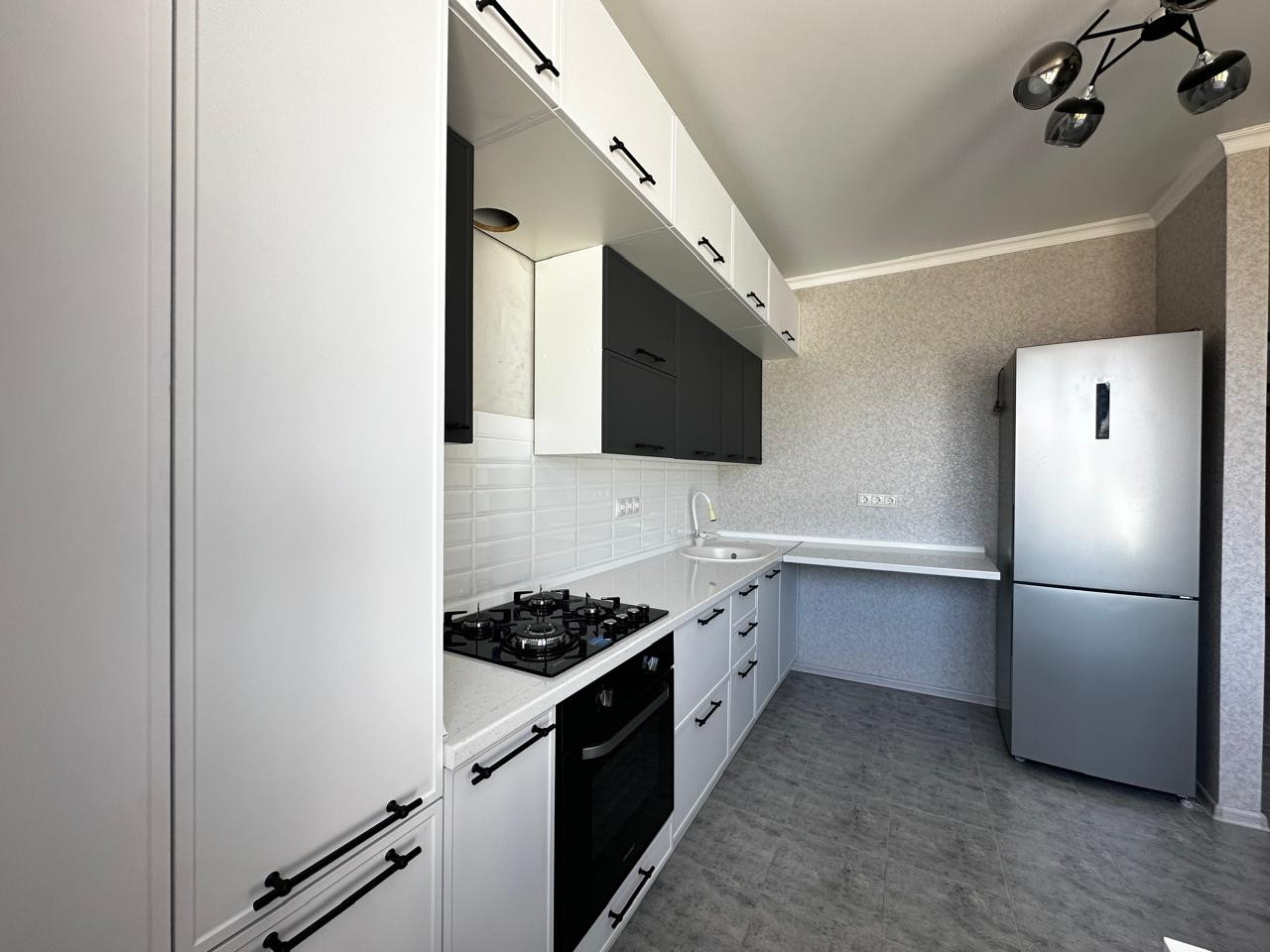 При продаже остаётся: кухня, варочная панель, духовой шкаф, вытяжка, холодильник.