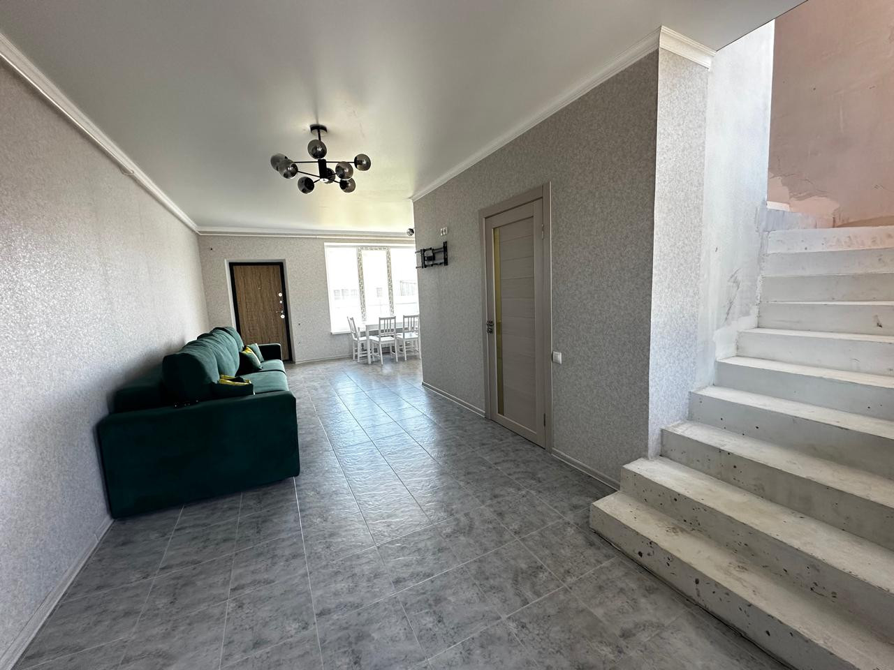 На 2-ом этаже: 3 комнаты. Стены готовы под отделку. Натяжные потолки.