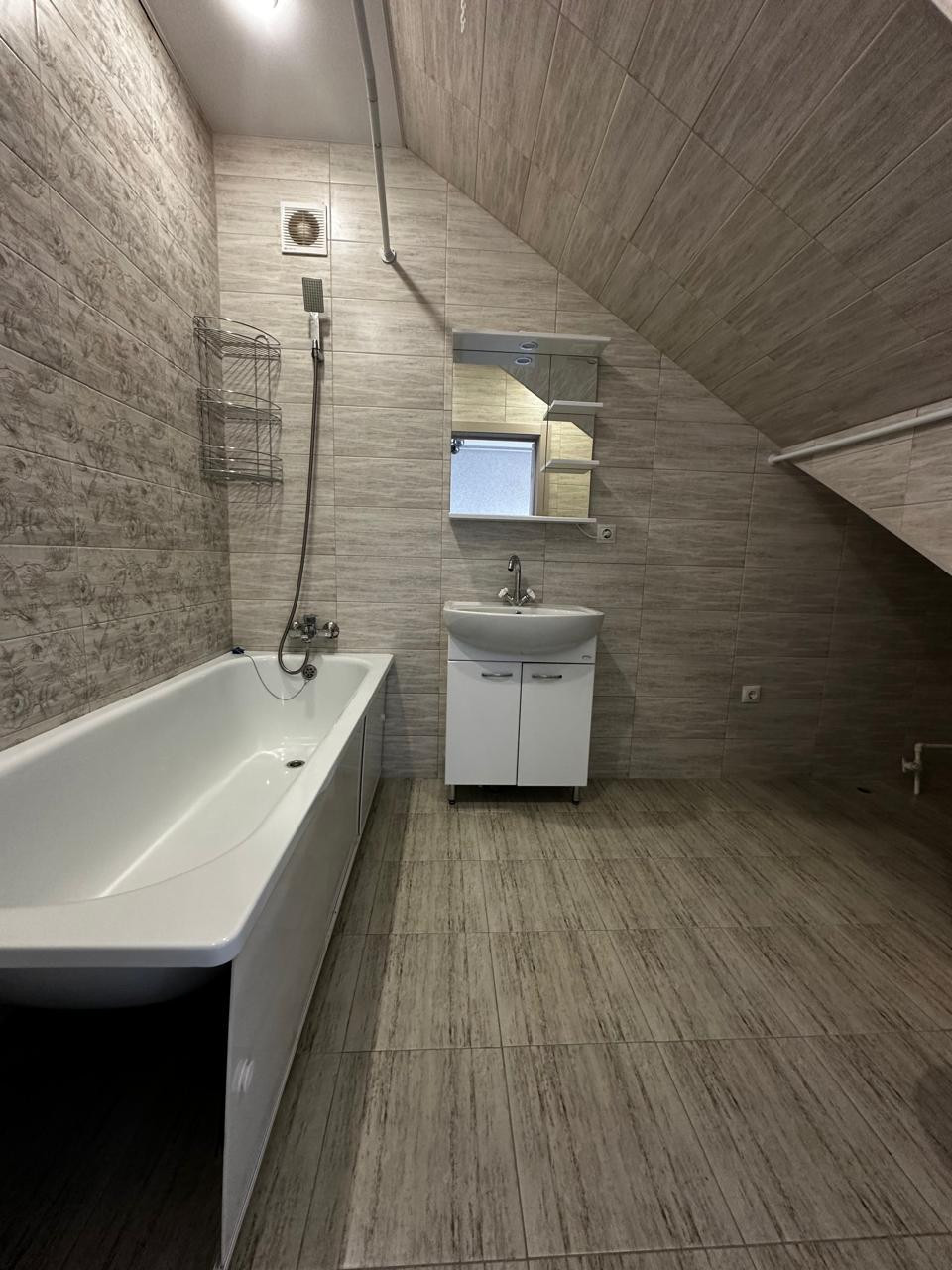 Теплый пол на весь этаж, натяжные потолки.