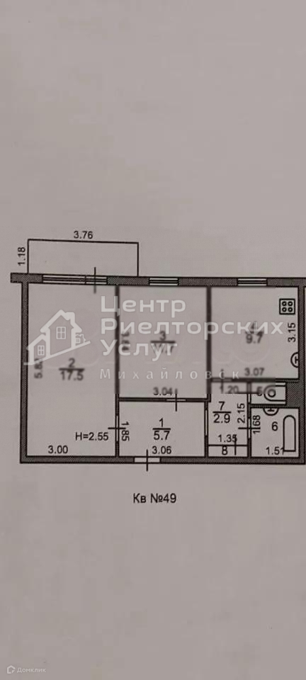 2-комнатная квартира, 54 м2, этаж 5 / 5, на продажу в Михайловске, улица Ленина, 179