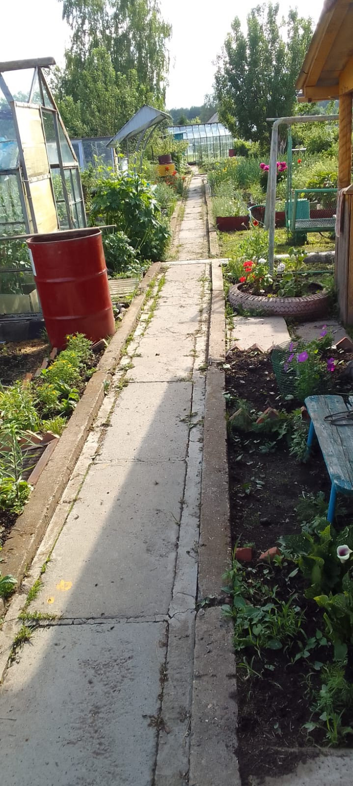 участок с домиком, все в собственности, скважина, электричество, три яблони, малина, жимолость, смородина, клубника, на участке имеется три теплицы, садовый домик с верандой, общей площадью 20 м.кв., до реки Уфа 300м
