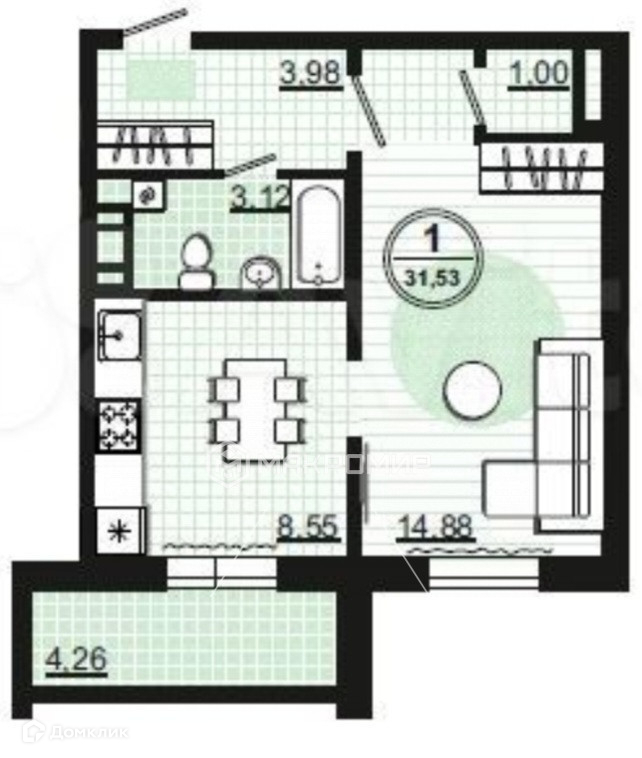 Общая площадь 32 м2