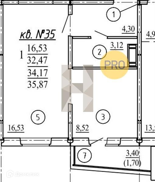 Общая площадь 35.8 м2