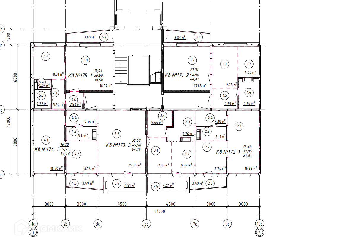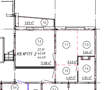 Общая площадь 42.5 м2
