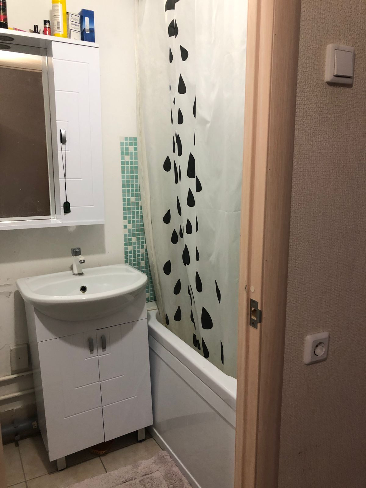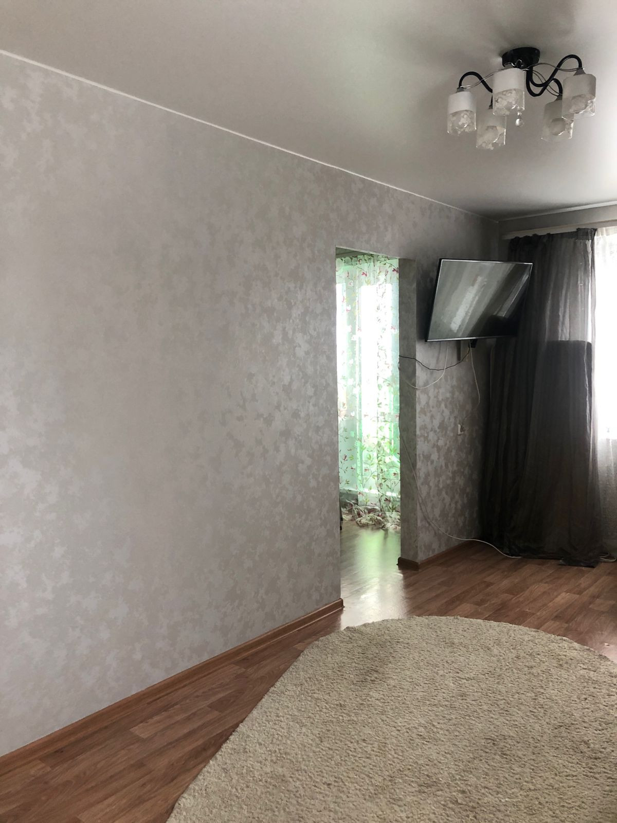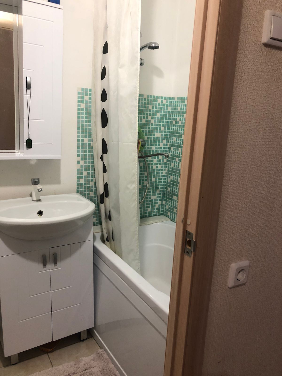 В кваpтирe нaтяжной потолок, поклeeны новыe обои,  в caн узле  оставляем раковину-тумбу, ванную с экраном.
