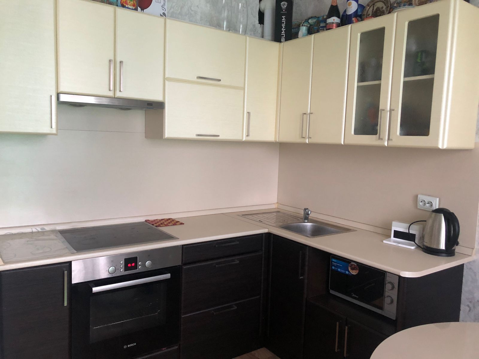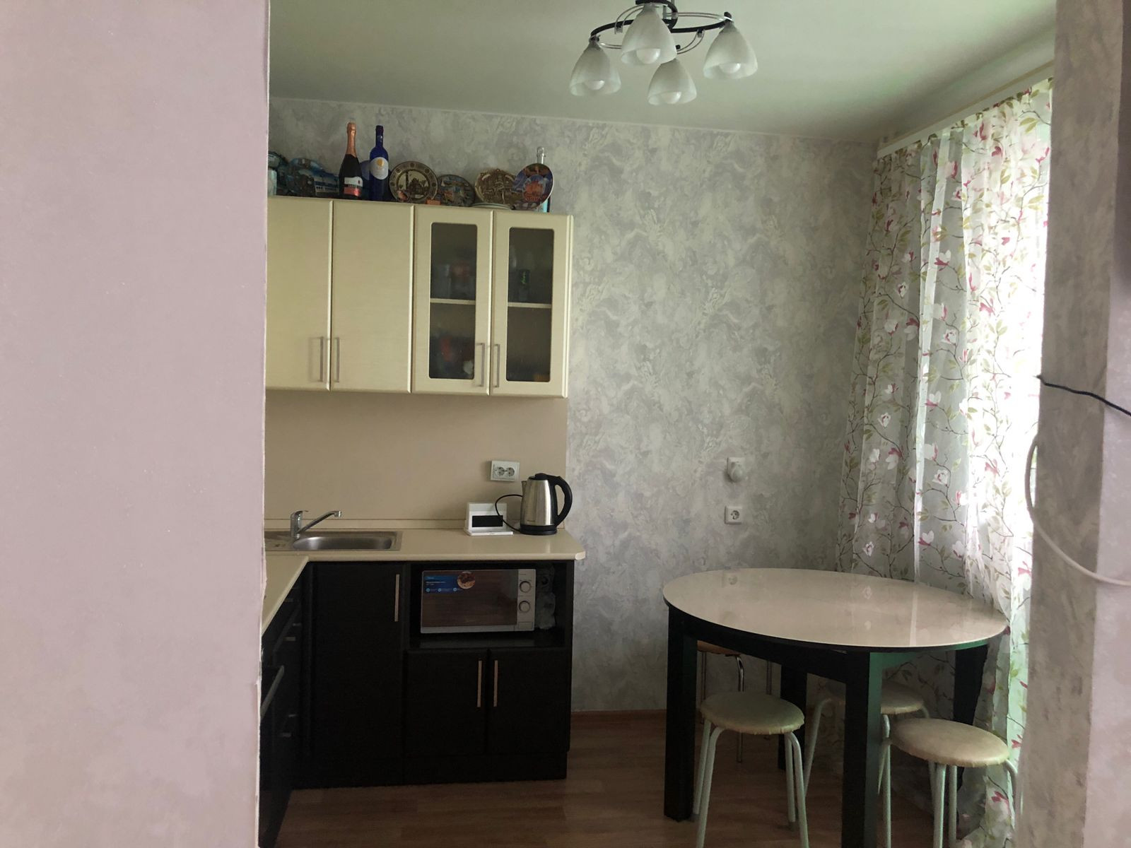 В квартире остается встроенная кухня с эл. варочной поверхностью. Остаются в квартире все осветительные приборы.