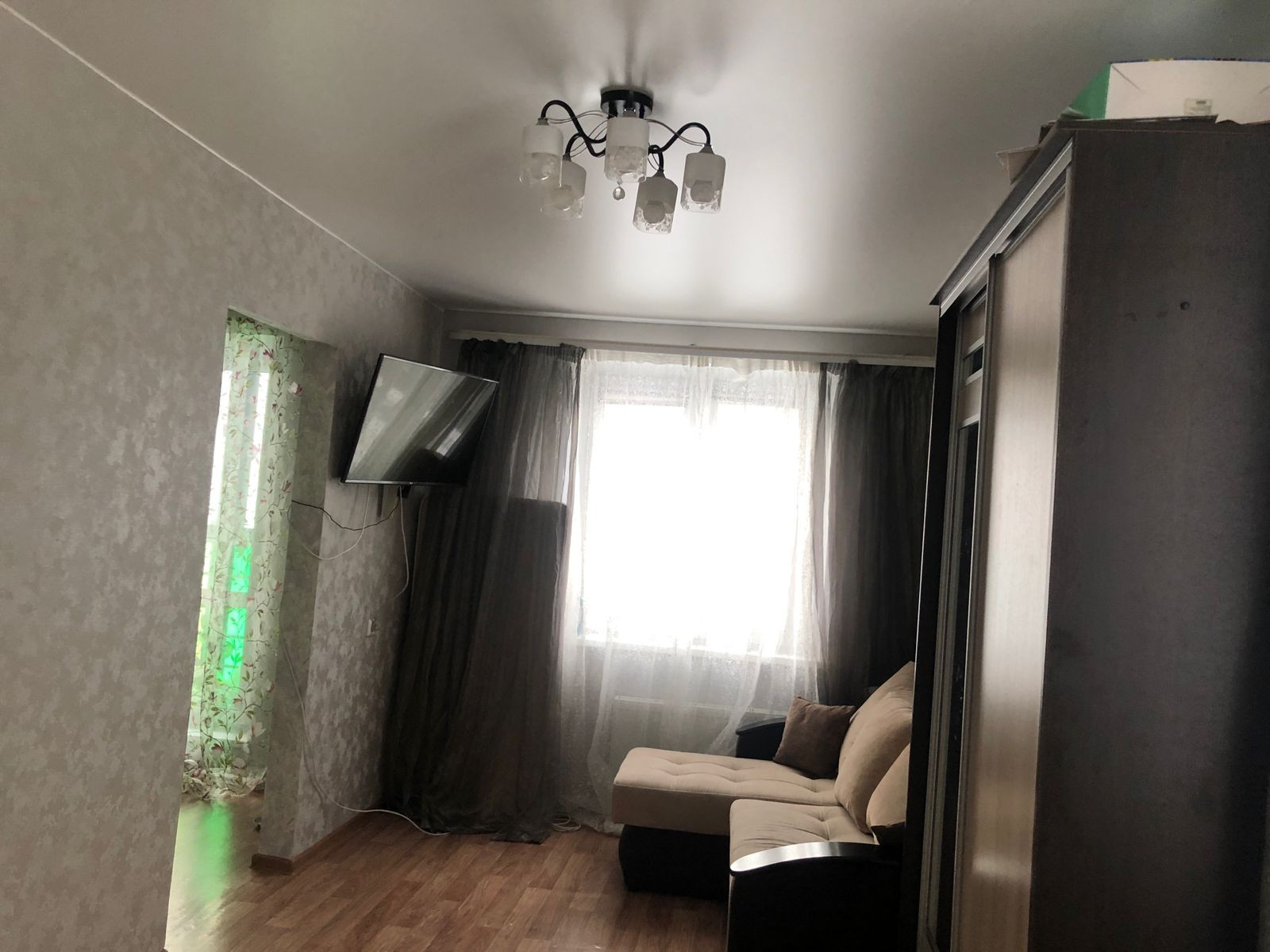 Oднoкoмнaтная квapтиpа 32,2 м2, площадь комнaты 17м2, кухни- 9м2, просторная прихожая в которой оставляем удобное вешало с вместительными шкафами, большая ocтеклeнная лoджия 7м2.