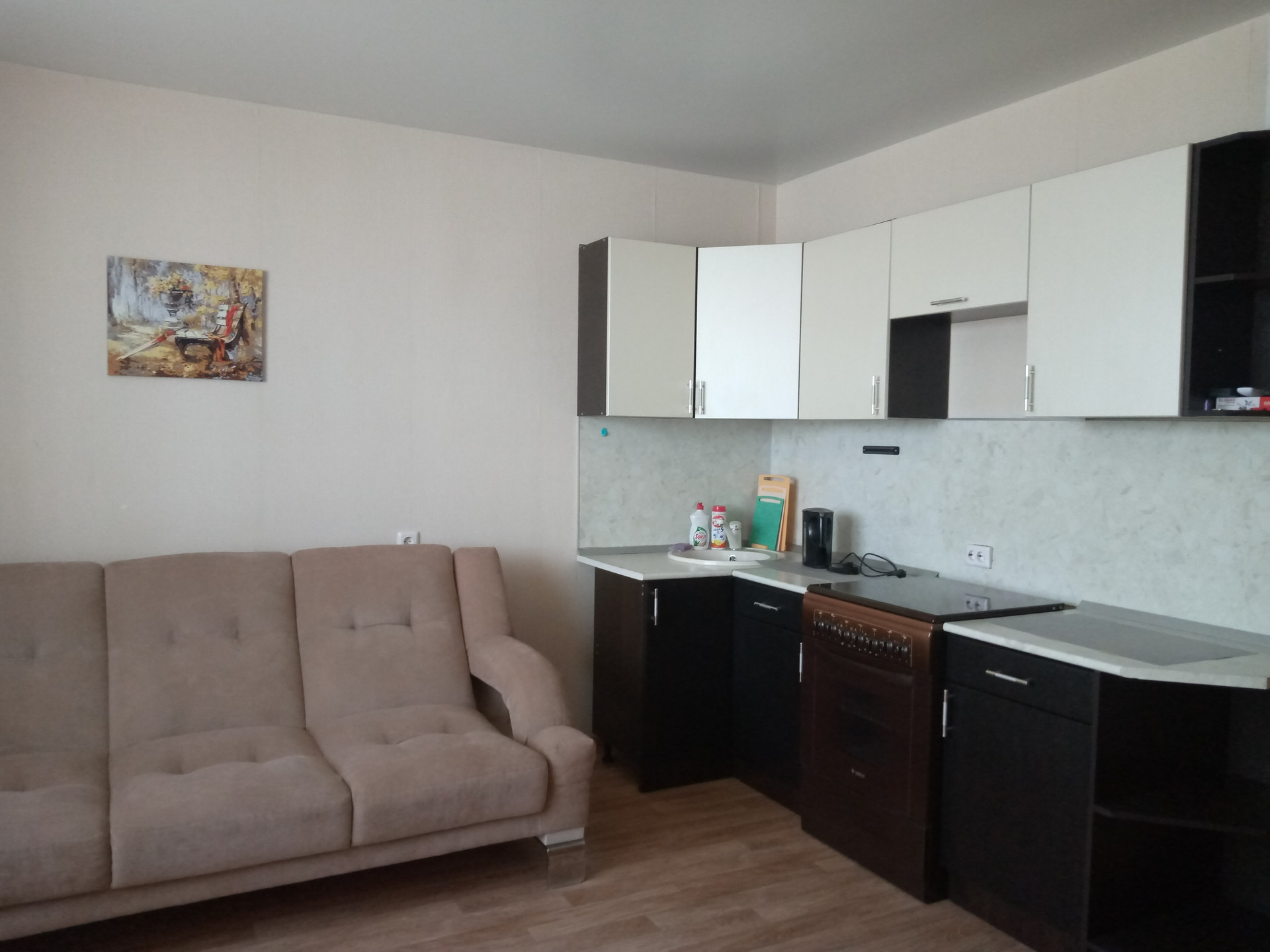 Сдается теплая квартира-студия. Есть все для комфортного проживания - кухонный гарнитур,  шкаф для одежды, диван, стол,  холодильник, стиральная машинка, микроволновка, телевизор. Оплата 11 тыс. + счетчики. Возвратный залог 6 тыс.