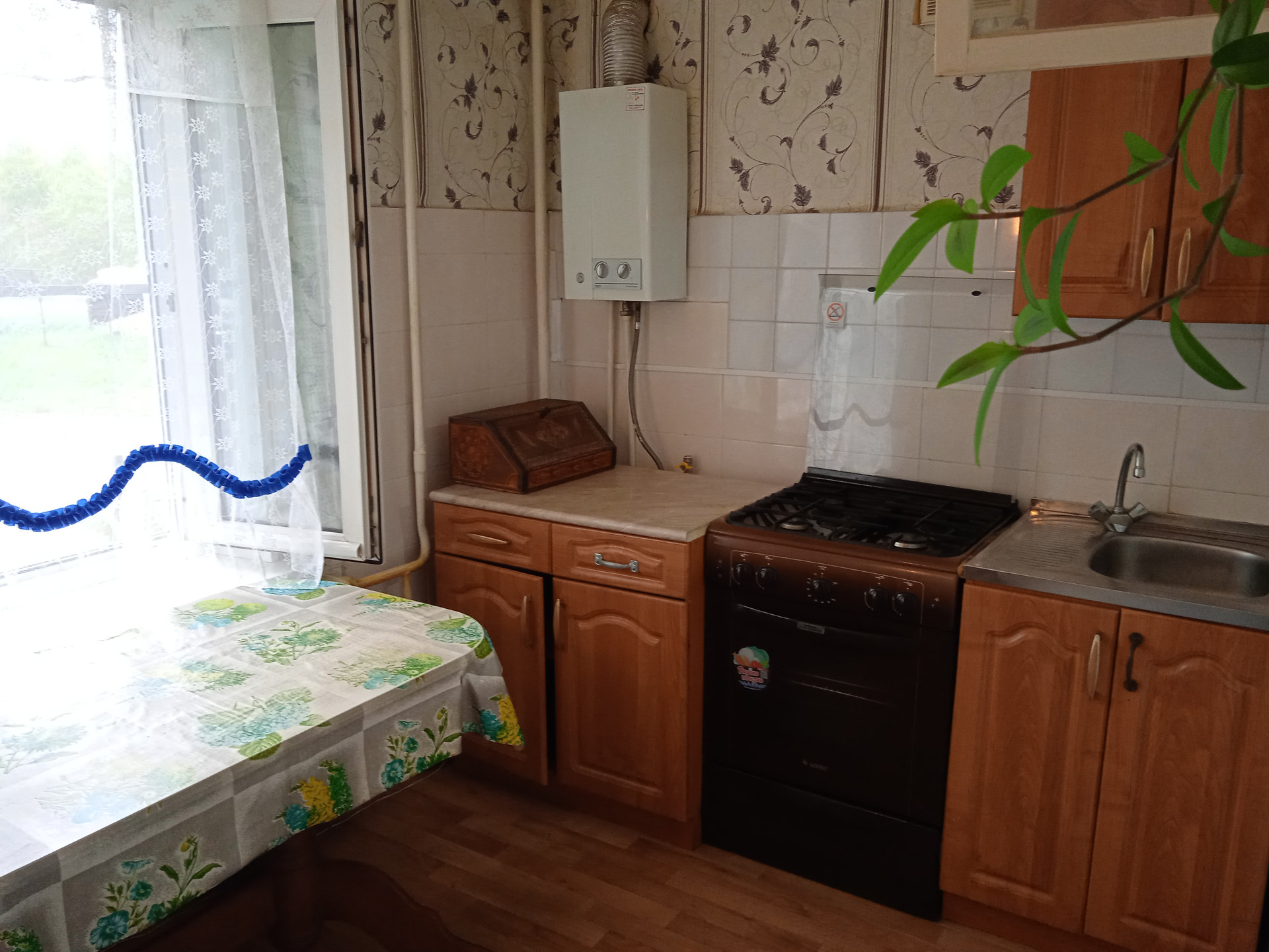 Вся мебель на фото (в том числе новая кровать с матрасом), техника (телевизоры, новая газовая плита, газовая колонка), кухонный гарнитур остаются.