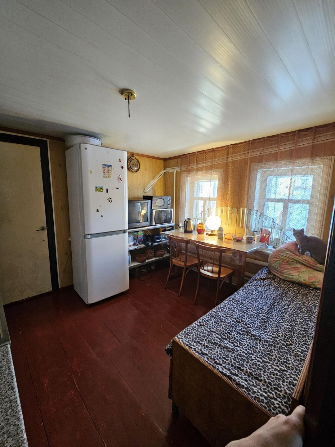 Продается дом 120м² на участке 4,5 сотки в хорошем районе.В шаговой доступности магазины,школа,детский сад и поликлиника.В доме подключены вода,отопление,электричество,газ,есть кондиционер. Построен из кирпича,высота потолков 2,80. Внутри 5 комнат,кухня,санузел,2 выхода из дома.Так же имеется подвал для закрутки,кладовая и мастерская с инструментом.Вся техника и мебель на фото остаются владельцам.На территории участка построен кирпичный гараж для 1 машины,двор асфальтирован.Небольшой огород,несколько сараев для инвентаря,уличный туалет и душ.Торг уместен при встрече.