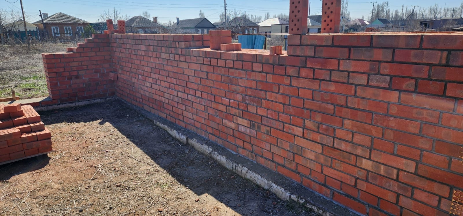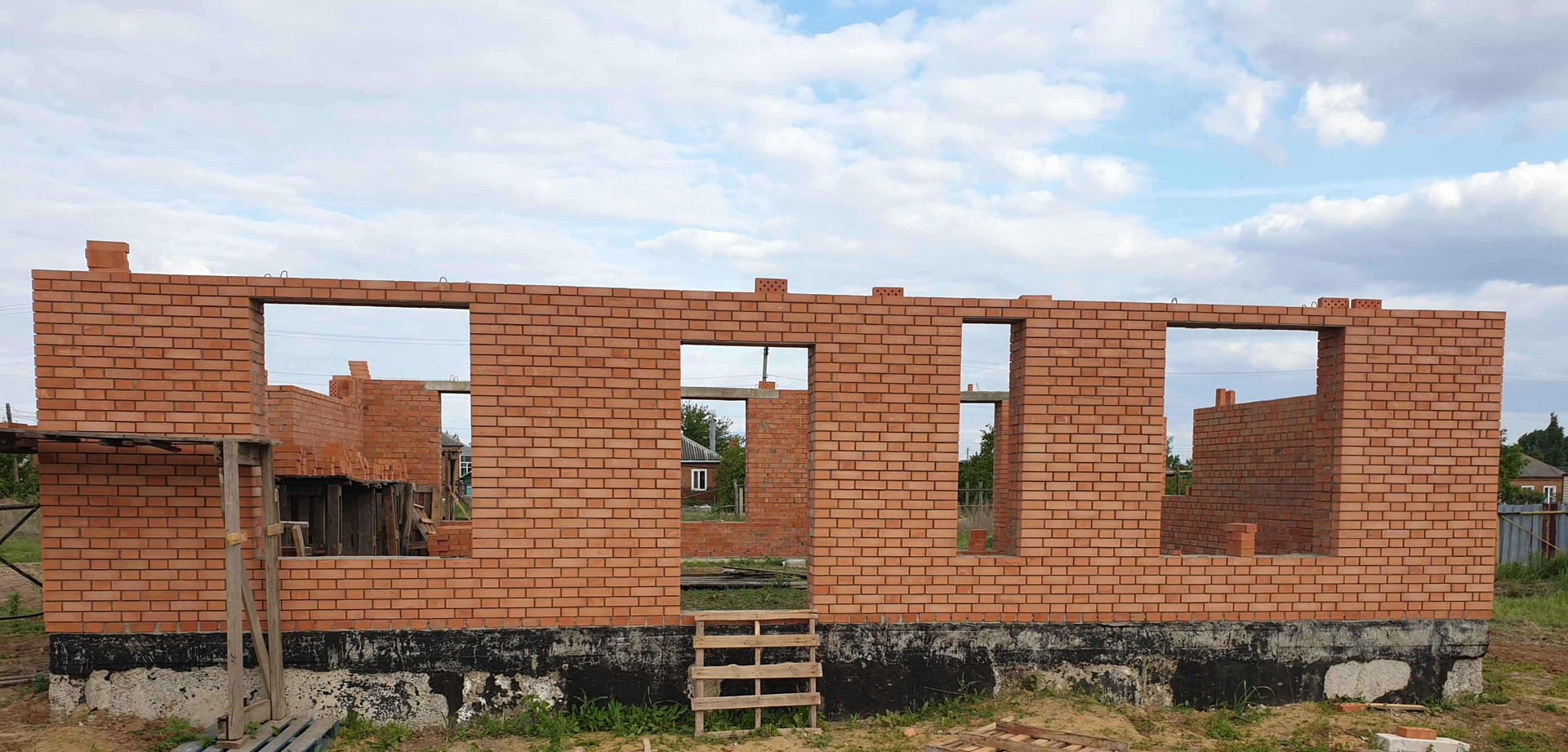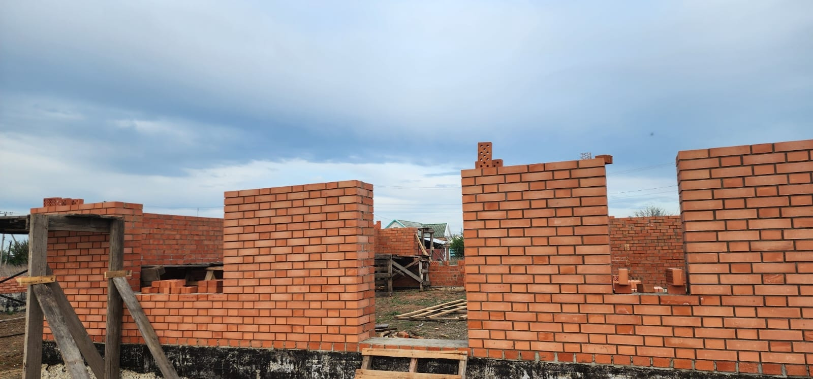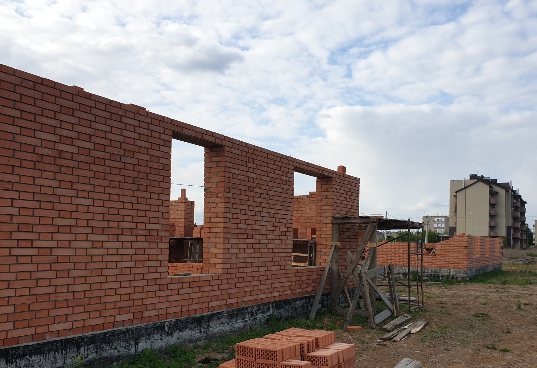 Кирпичные стены, возможность выбора планировки, высоты и места  расположения оконных проёмов(на начальном этапе строительства).