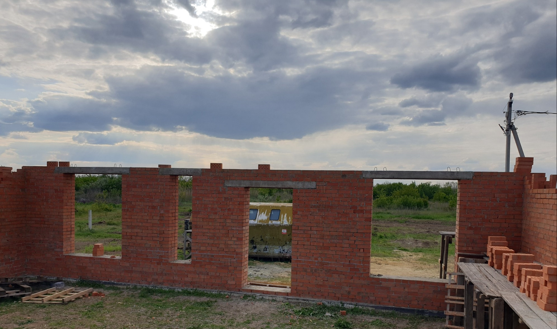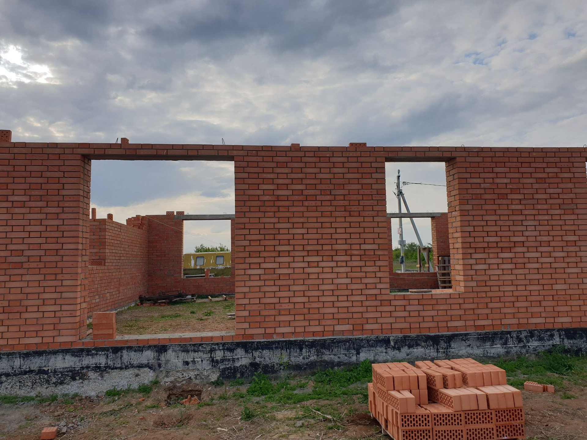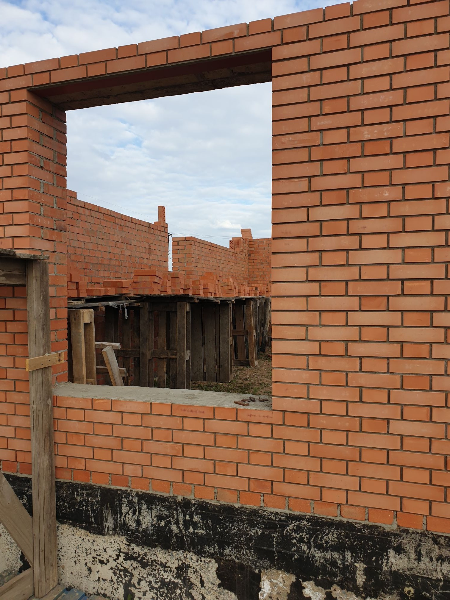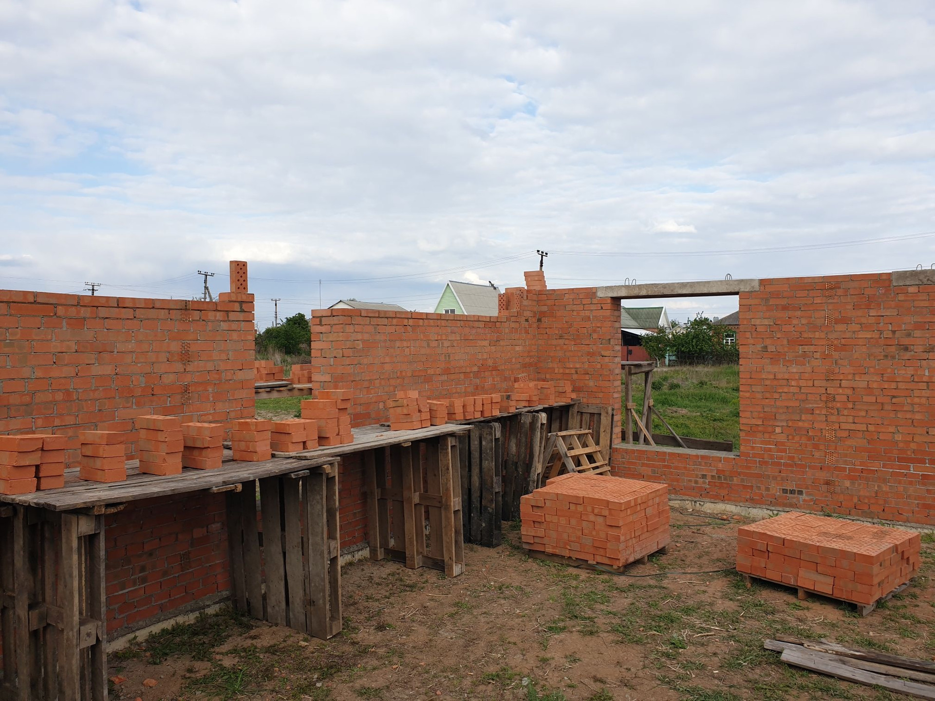 Кирпичные стены, возможность выбора планировки, высоты и места  расположения оконных проёмов(на начальном этапе строительства).