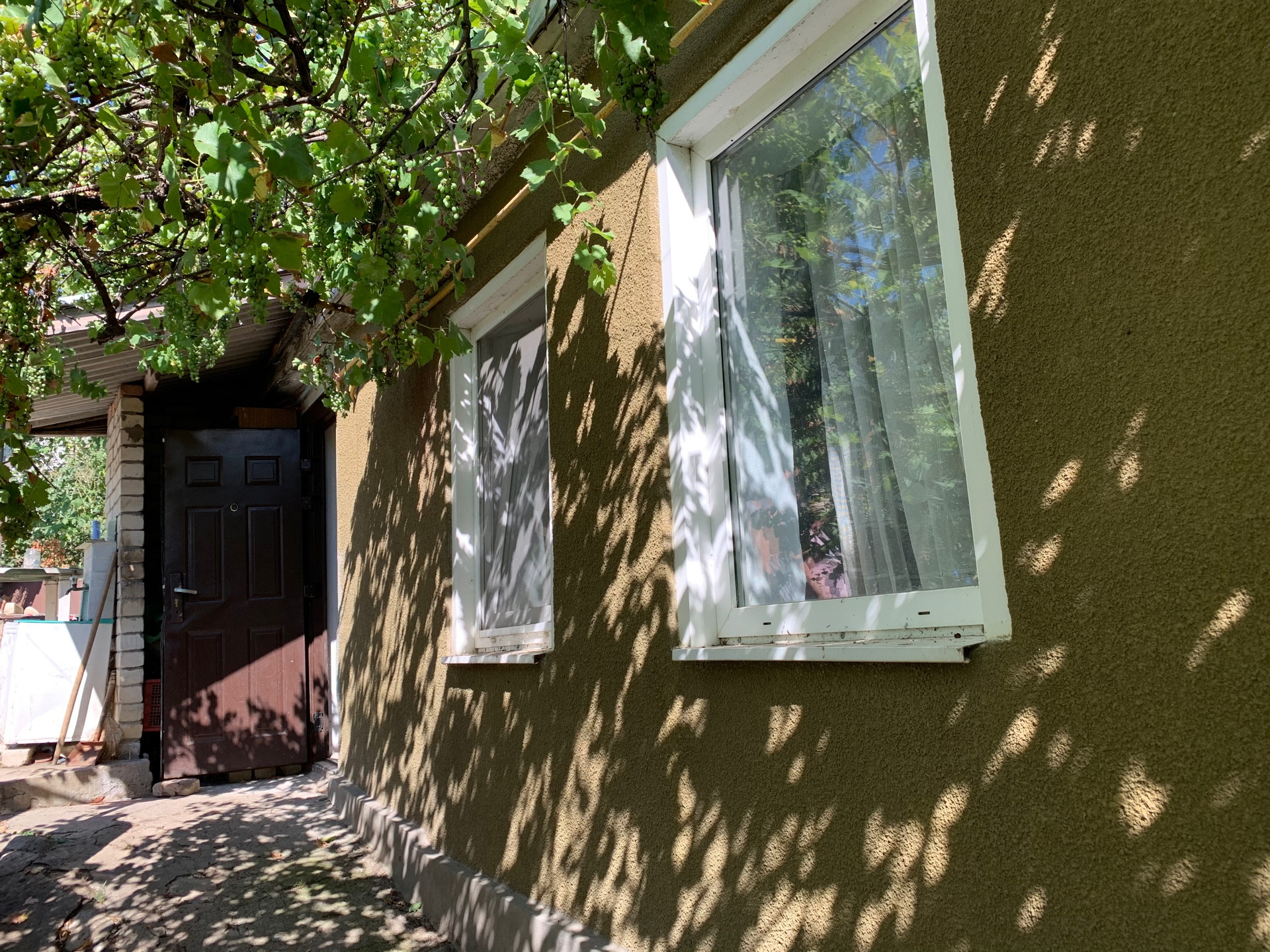 Стены - саман под шубой, окна ПВХ.