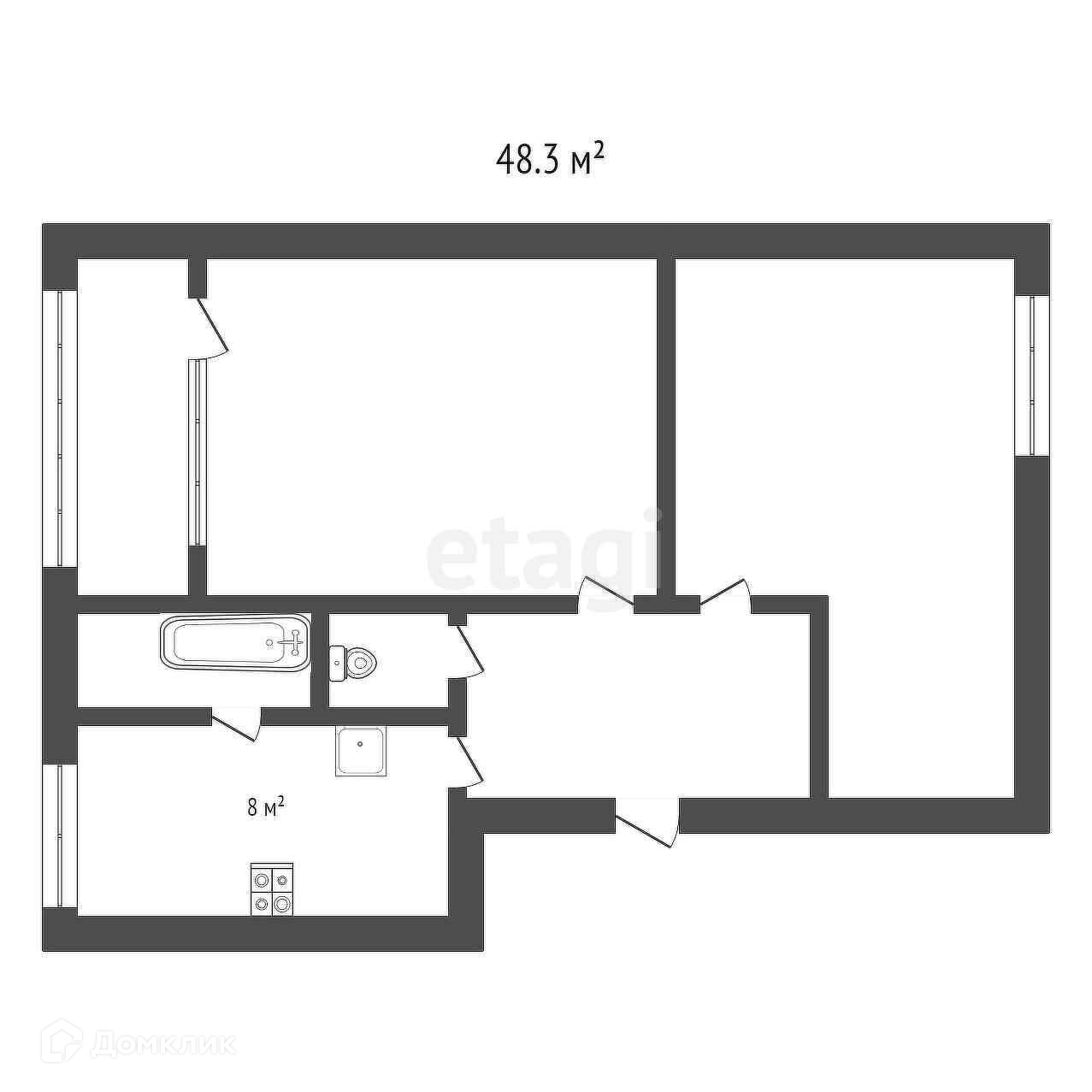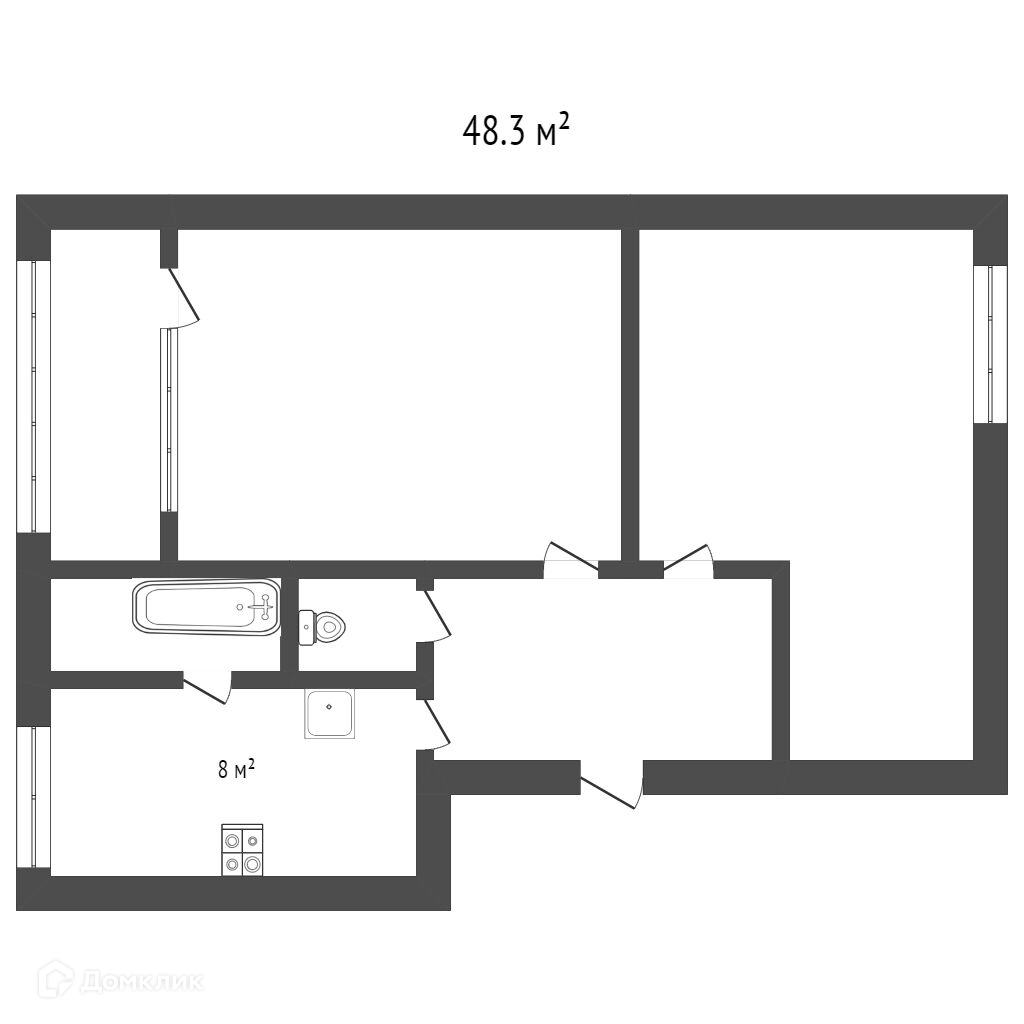 Общая площадь 48.3 м2