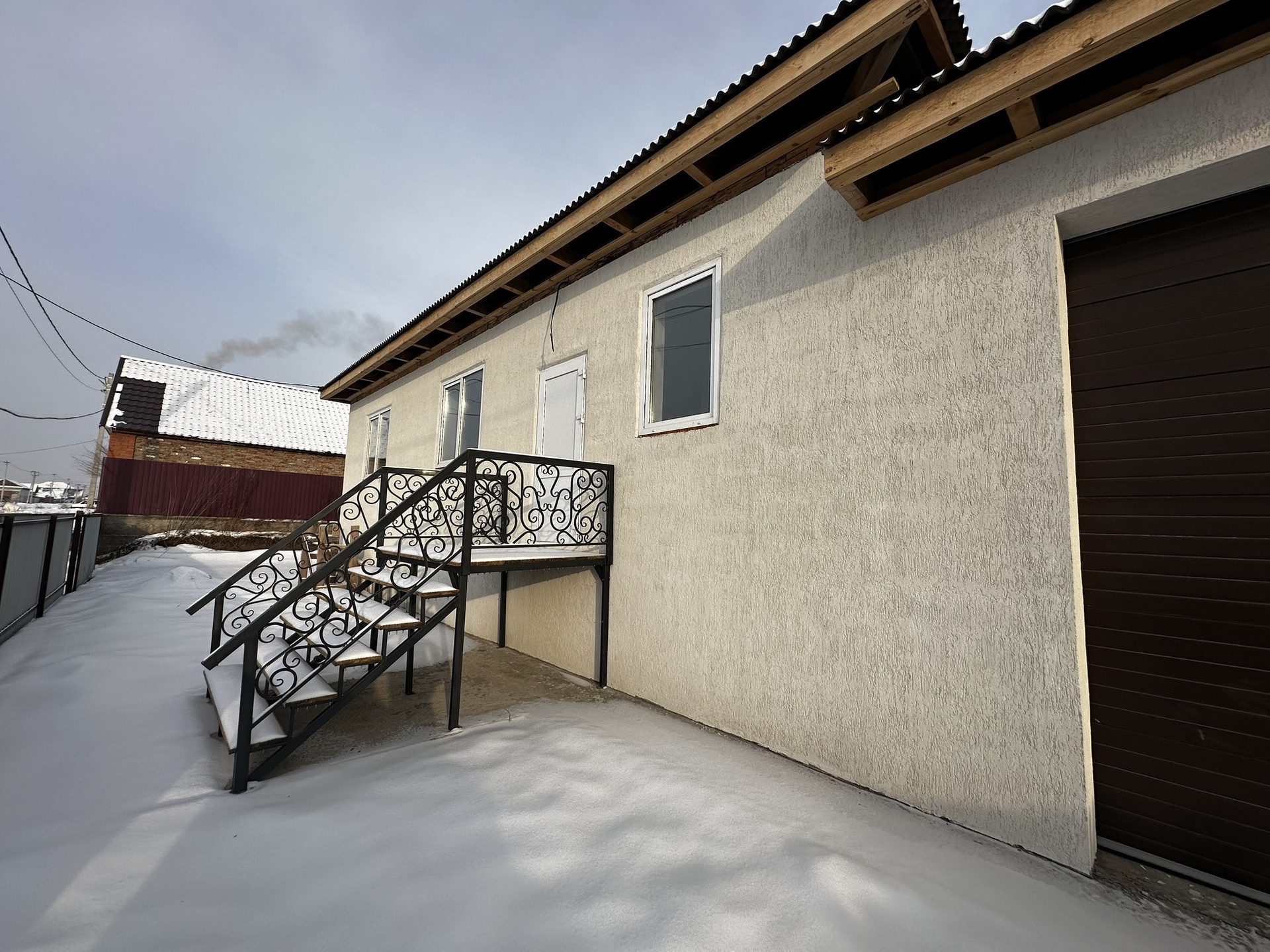 Дом расположен в хорошем месте в юго-восточном микрорайоне. Рядом остановка. Вода, септик, гараж в доме. Дом из арбоблоков с внутренней отделкой. Высокие потолки, просторные комнаты.
