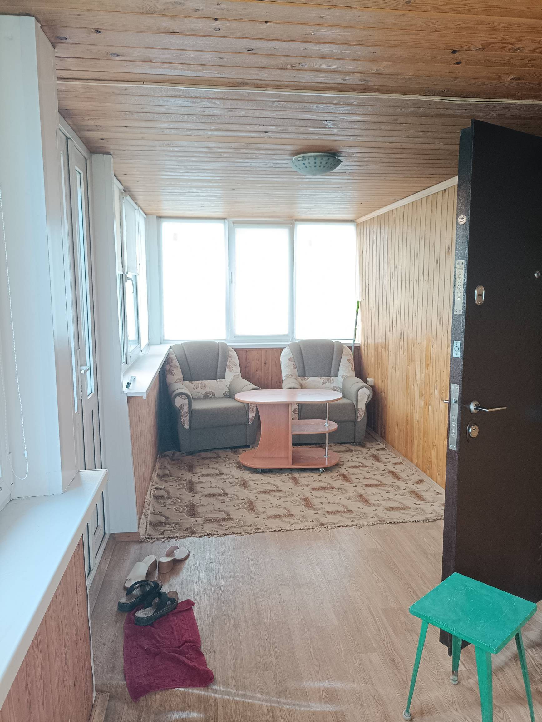 Светлая просторная веранда, застеклена ПВХ.