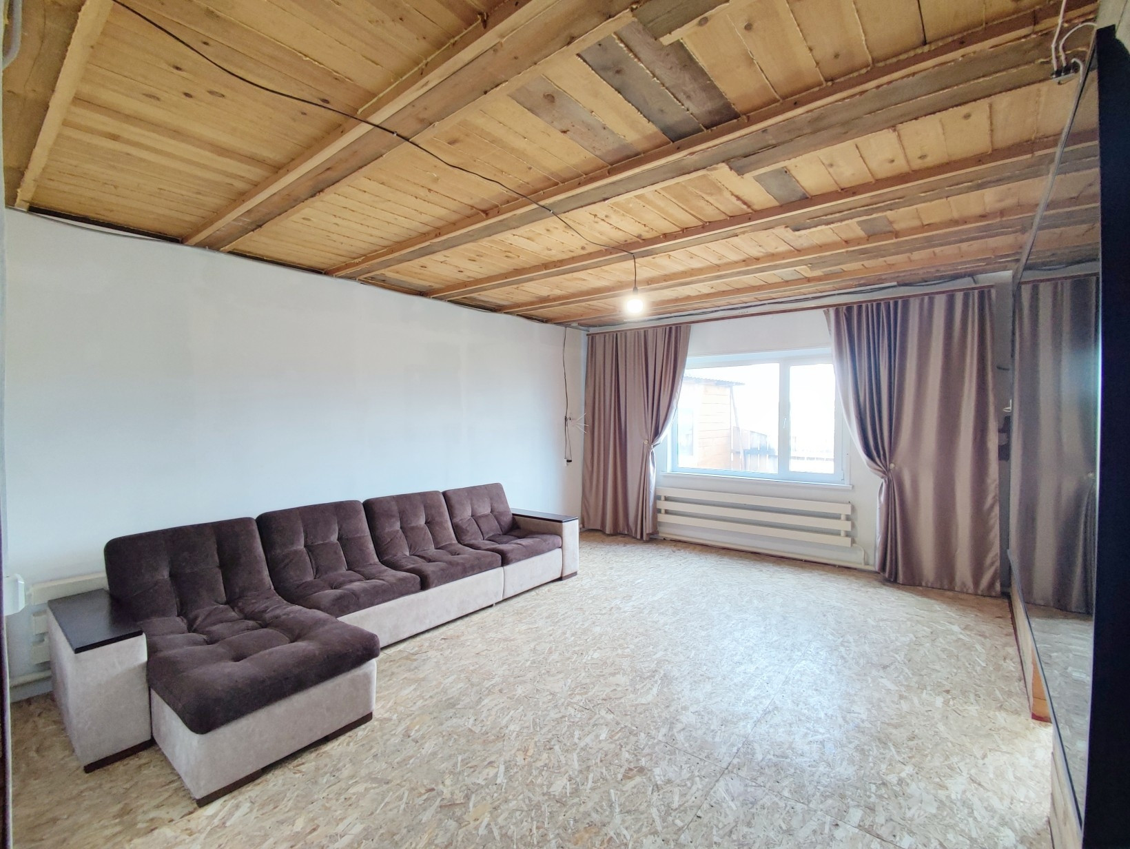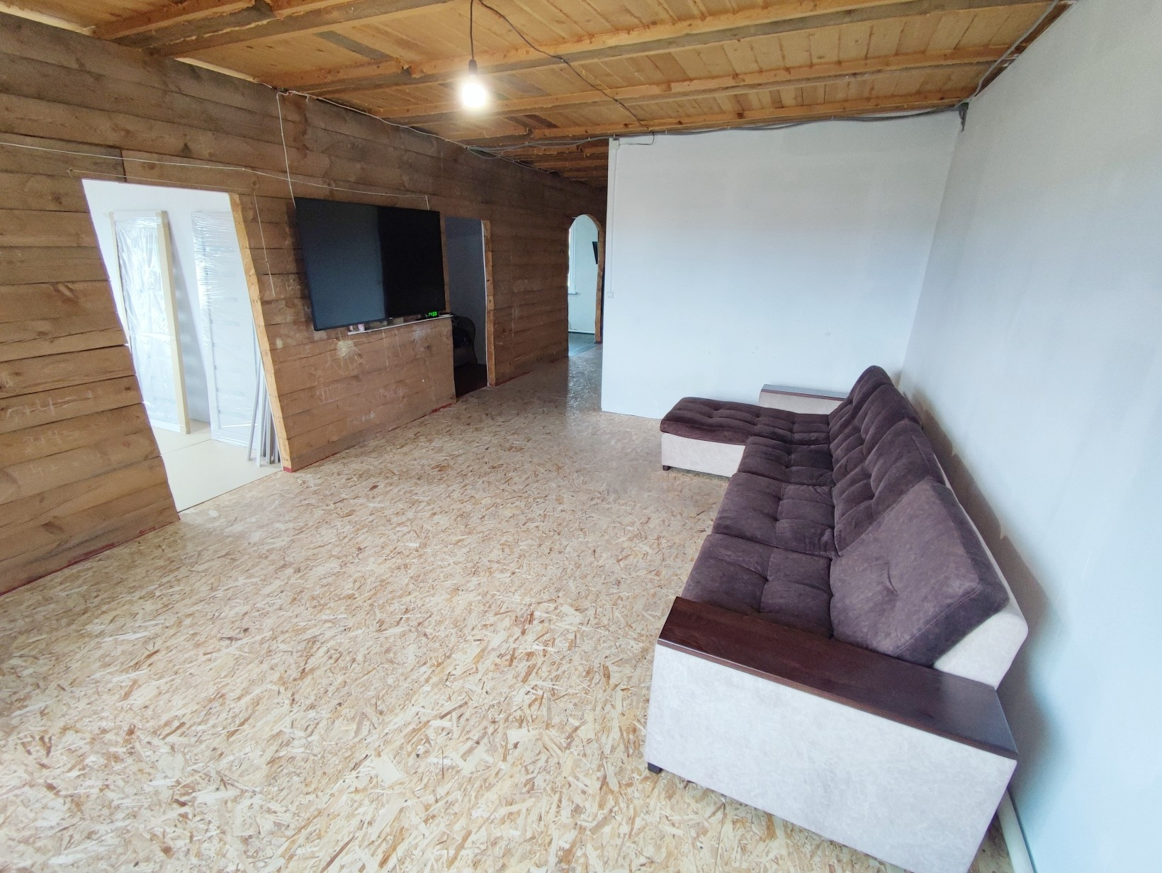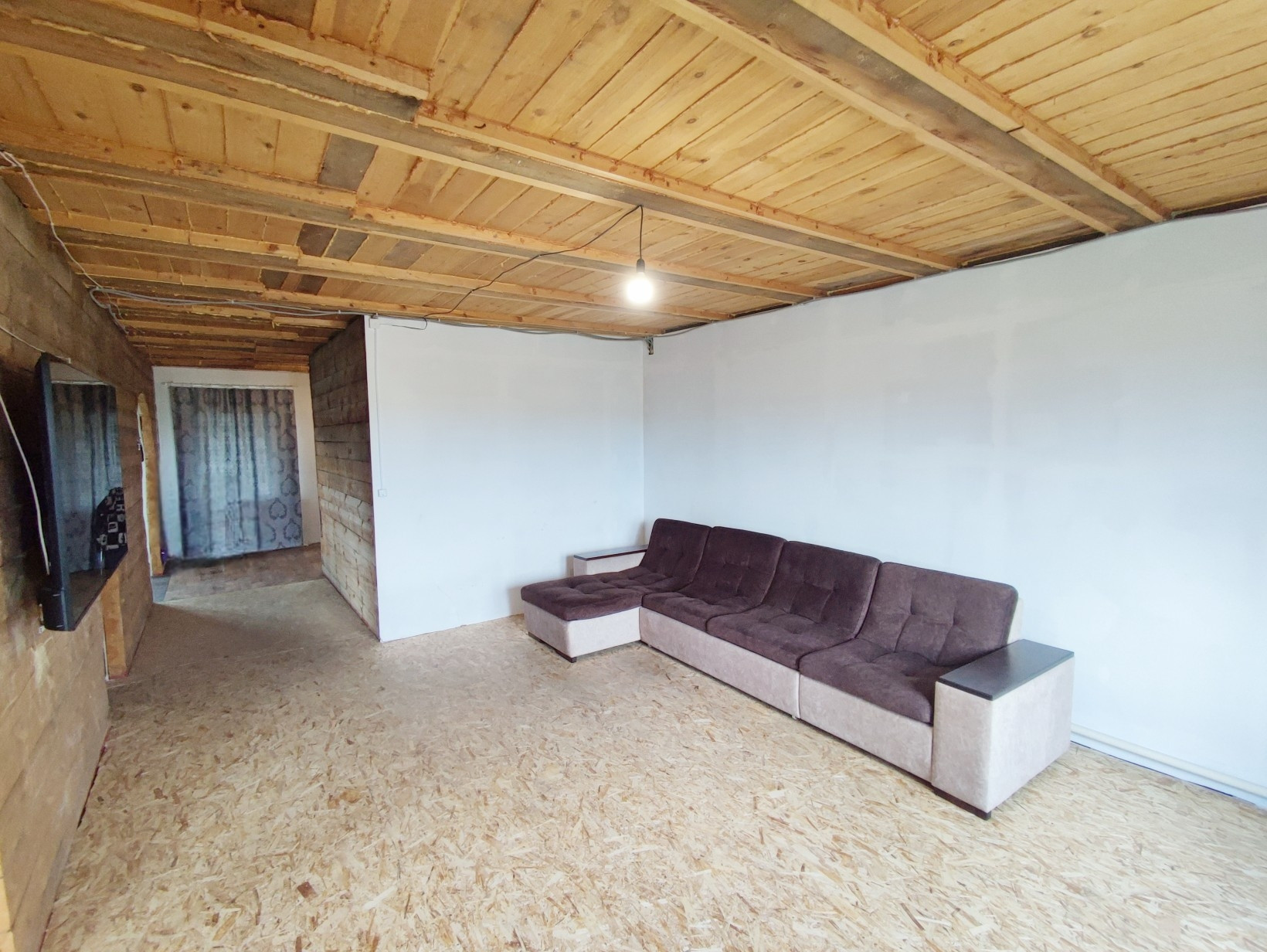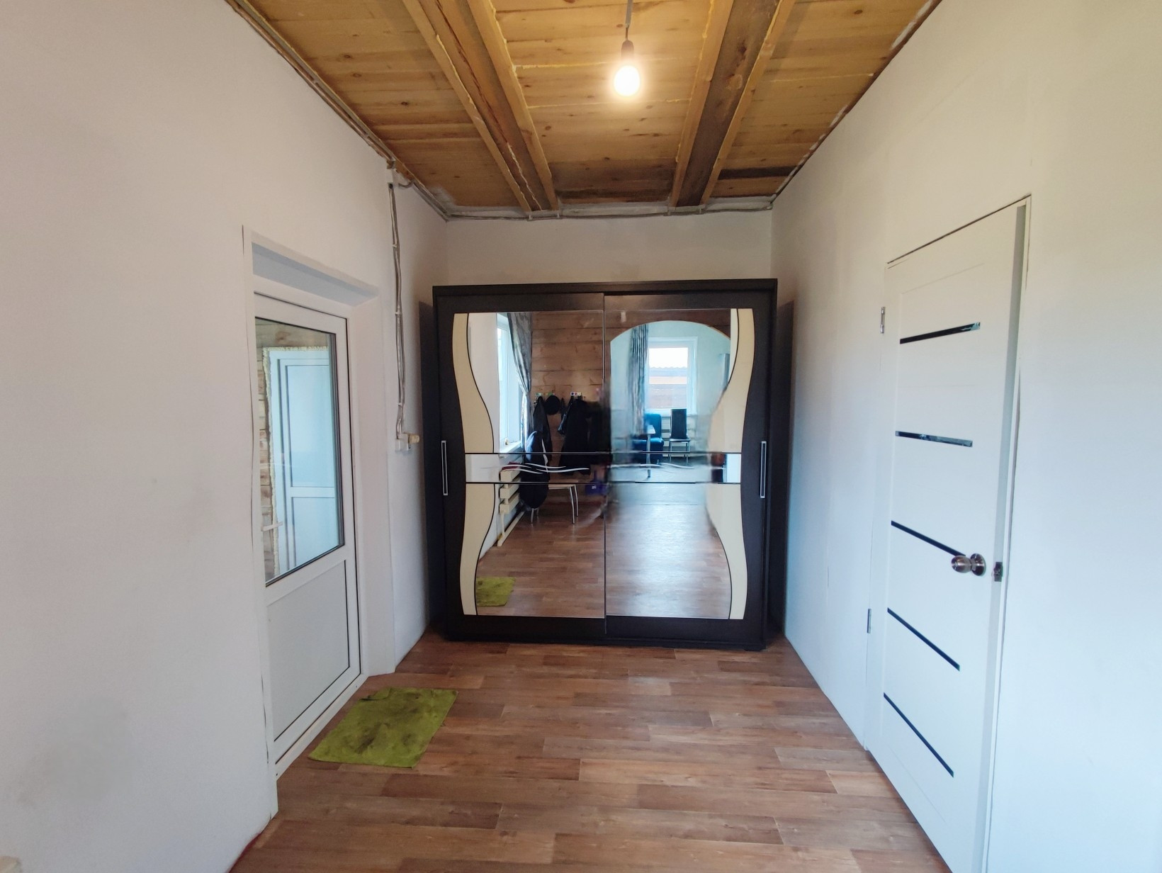 На первом этаже: котельная ( отопление твердотопливный котел), вместительная прихожая, кухня, две изолированные комнаты, гостиная, совмещённый санузел. Есть возможность сделать второй этаж.