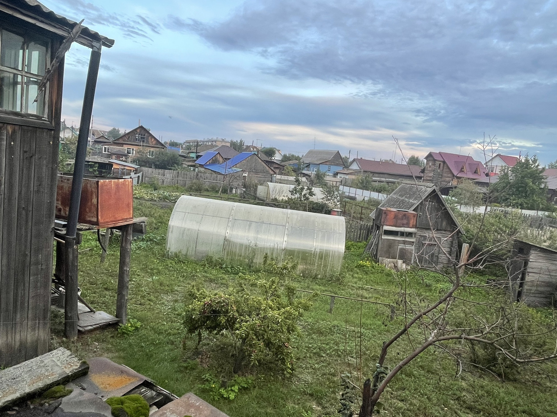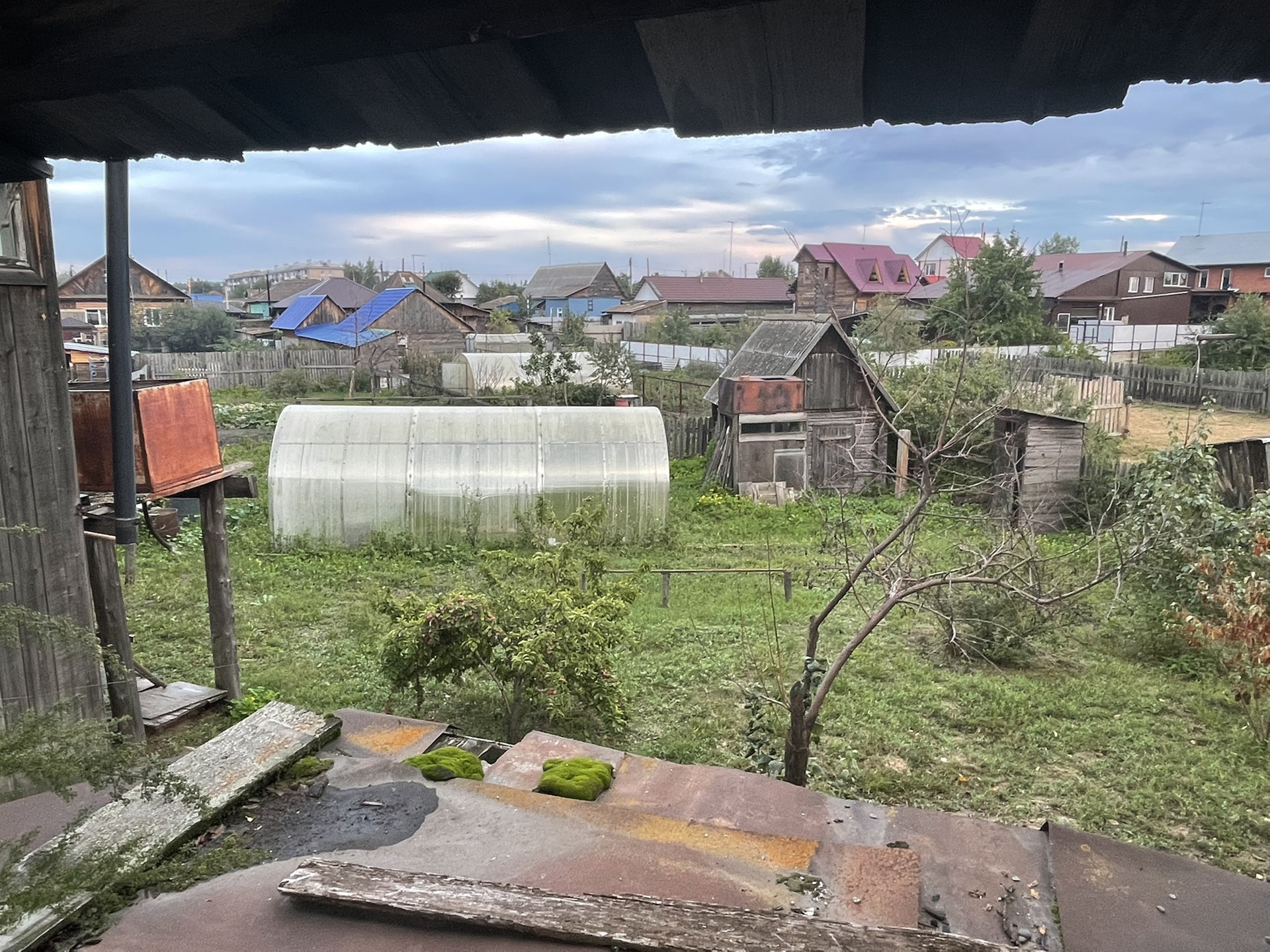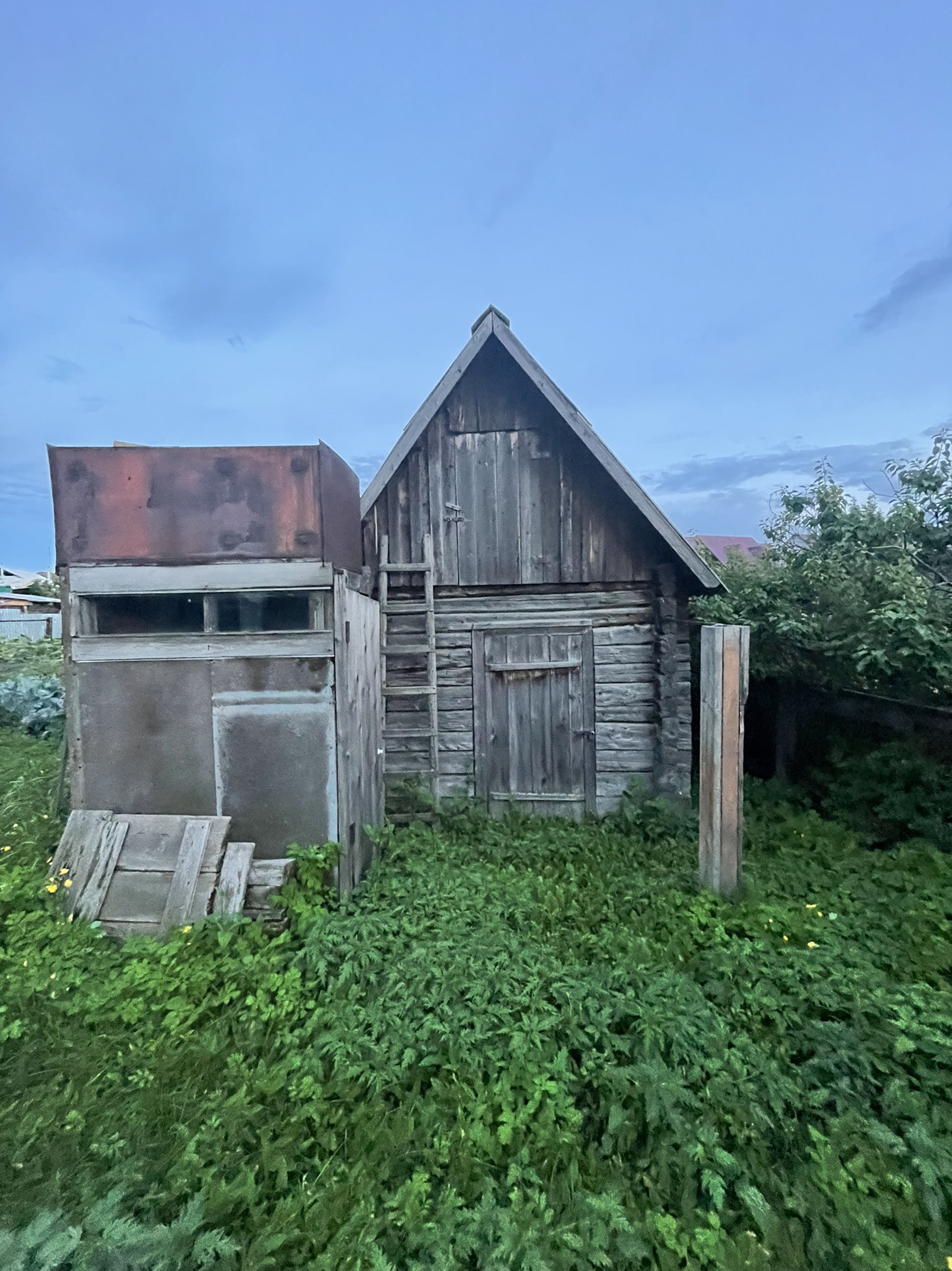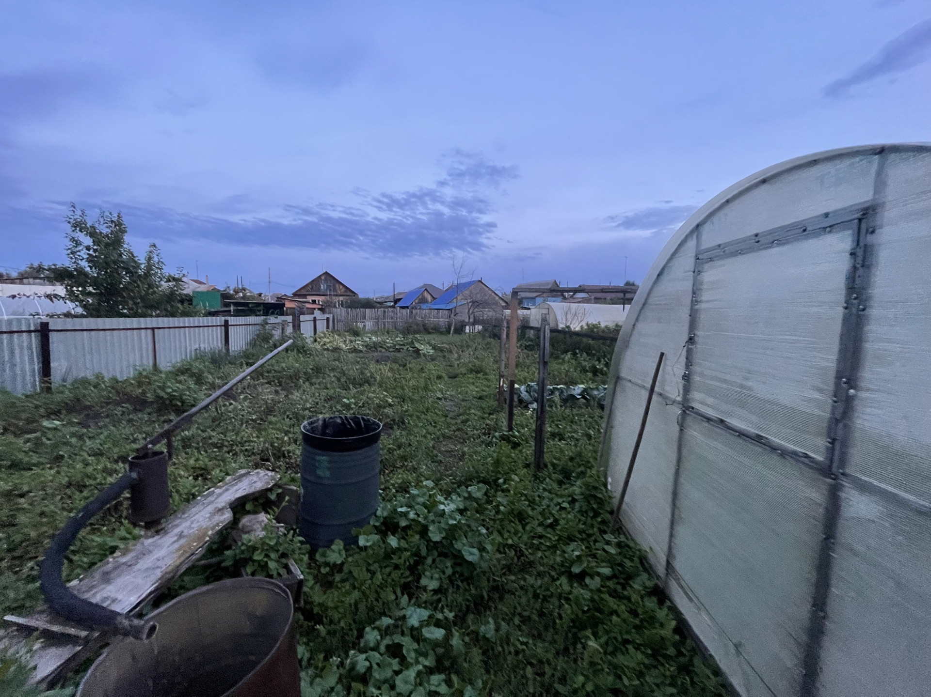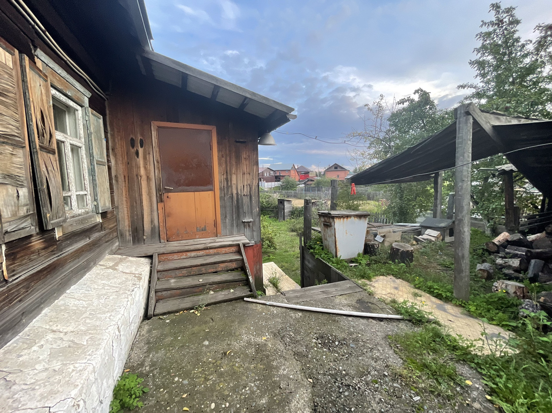 Комната и кухня, на первом этаже кабинет , печь на каждом этаже . Теплица , дом для бани , рядом Бор .