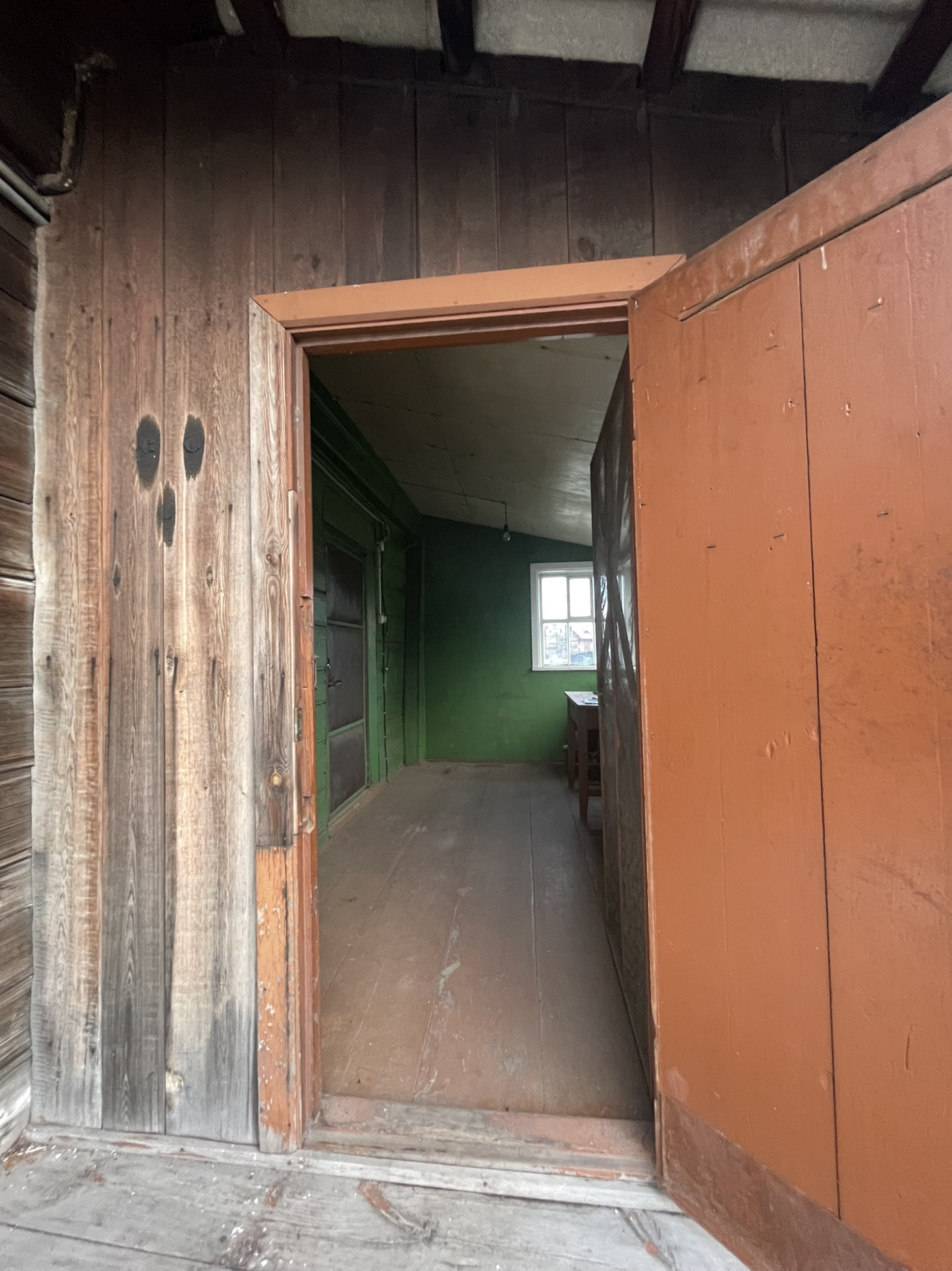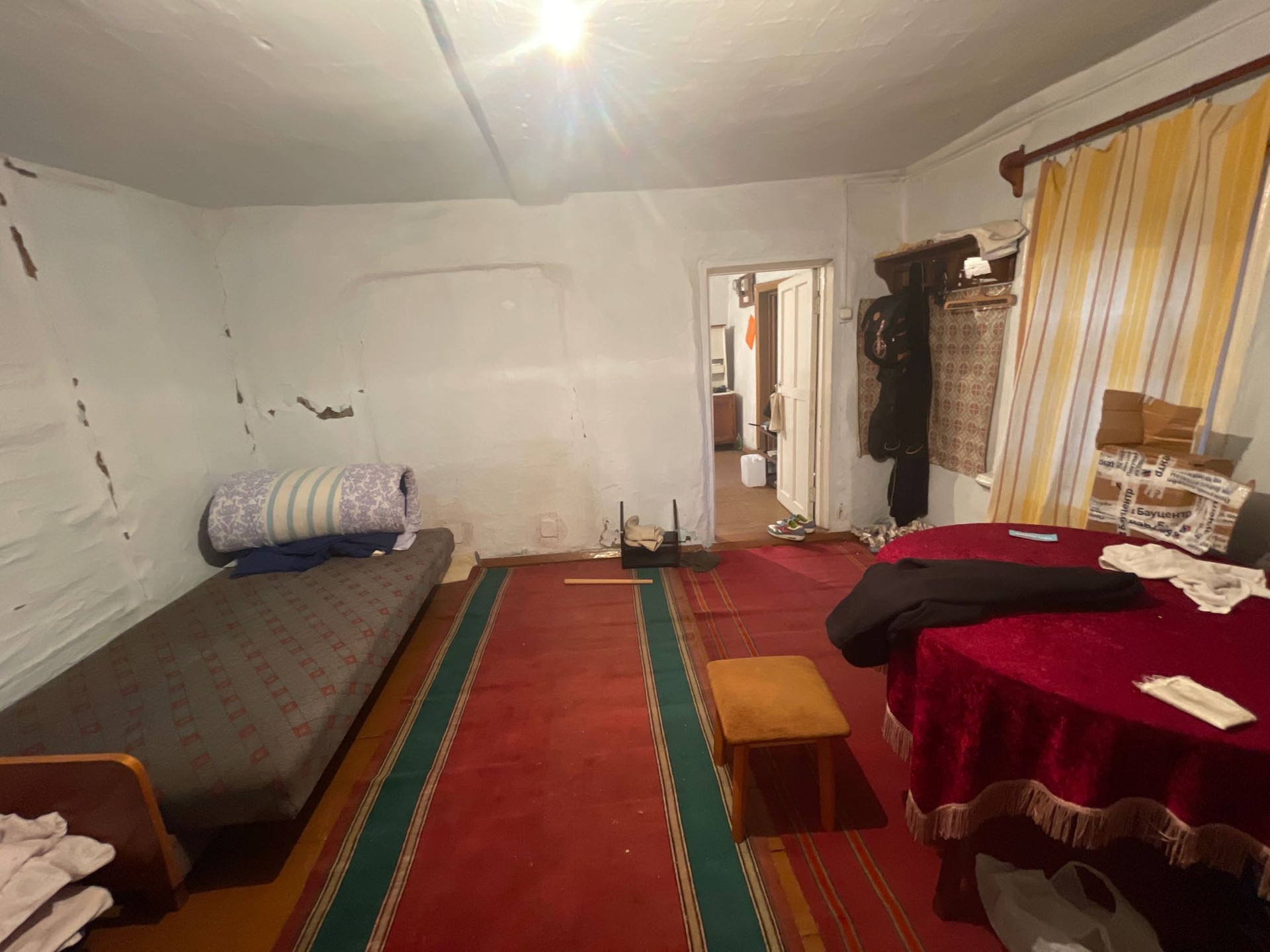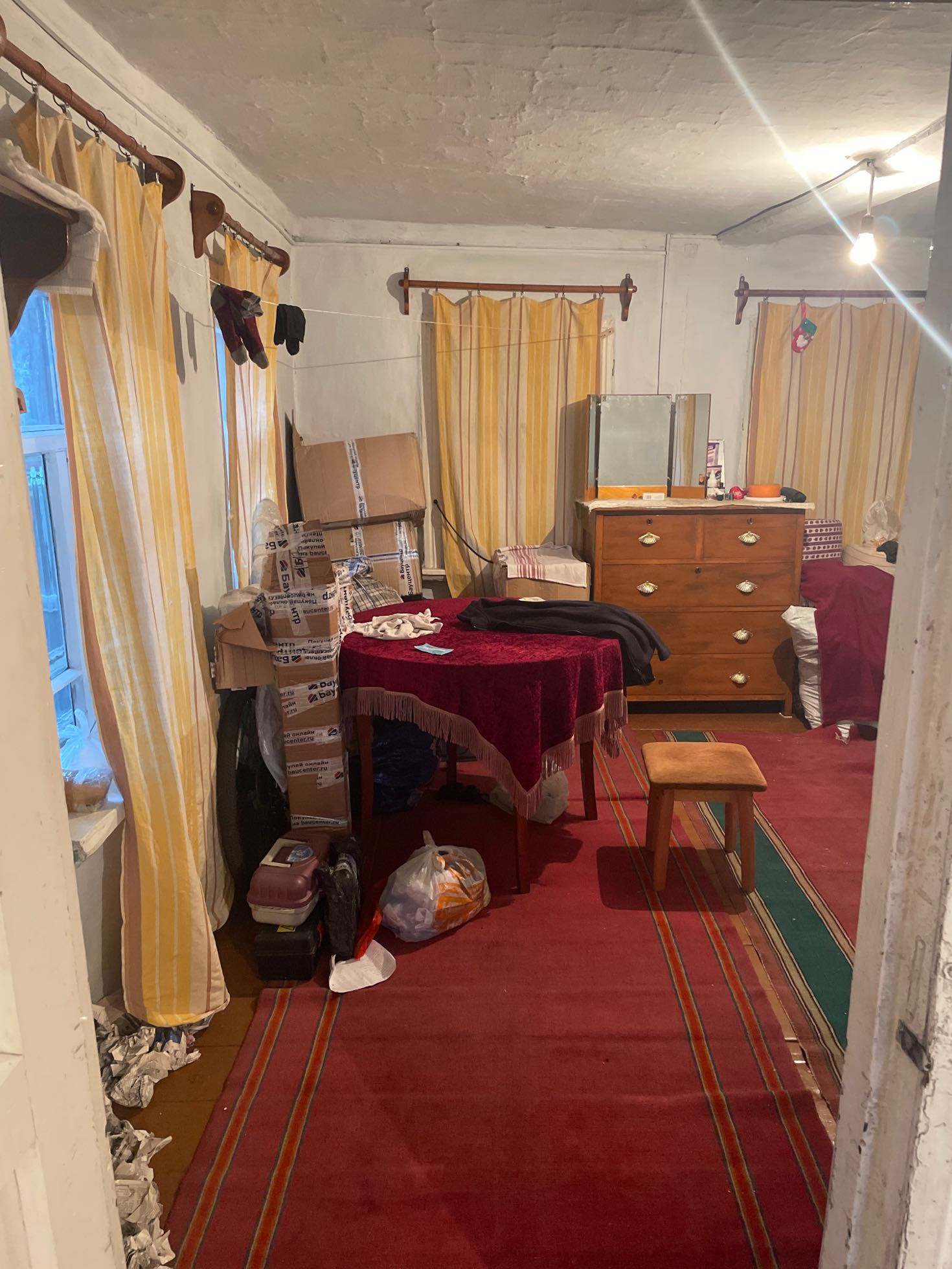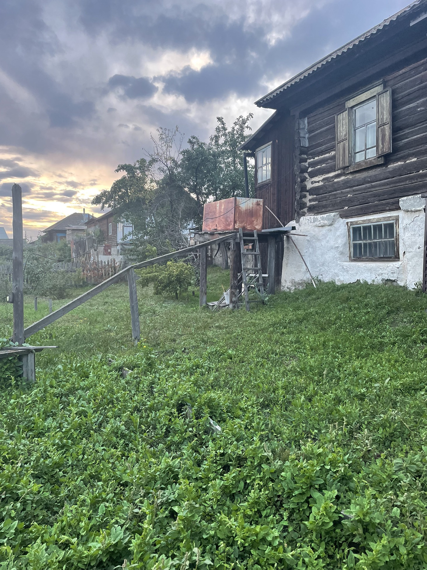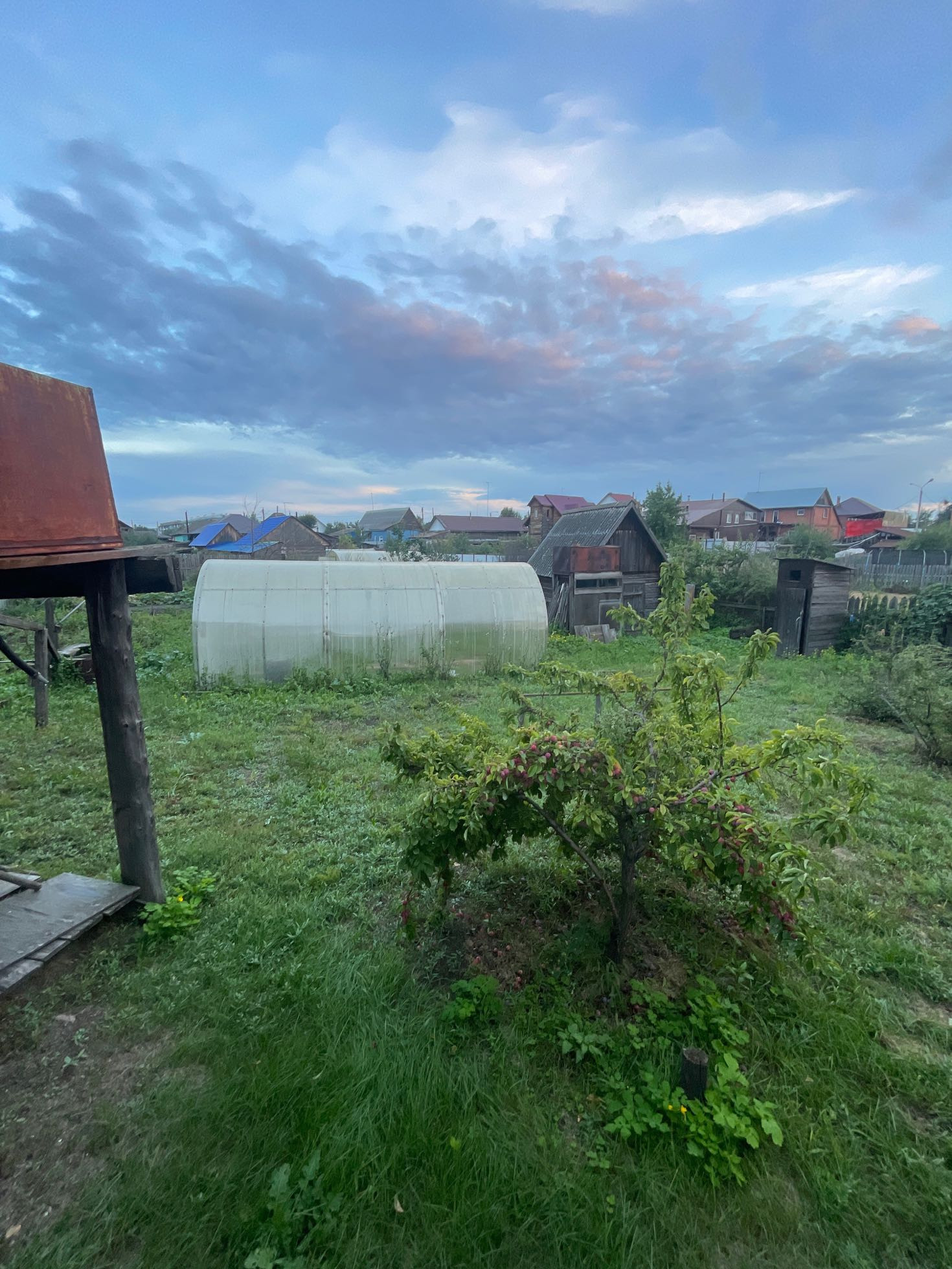 Комната и кухня, на первом этаже кабинет , печь на каждом этаже . Теплица , дом для бани , рядом Бор .